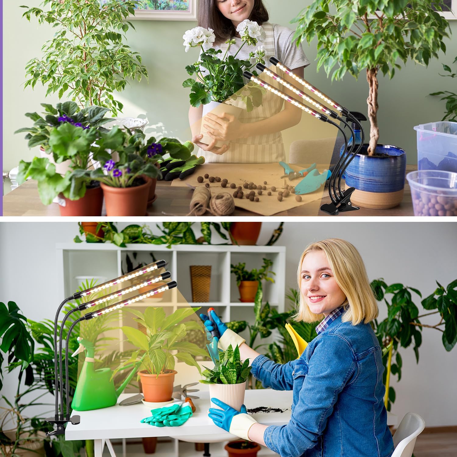 3head Plant Lights for Indoor Growing, Grow Light for Indoor Plants, Full Spectrum Growing Lamps with Clip, Auto ON & Off Timer 3/9/12H, 3 Switch Modes, 10-Level Dimmable Brightness