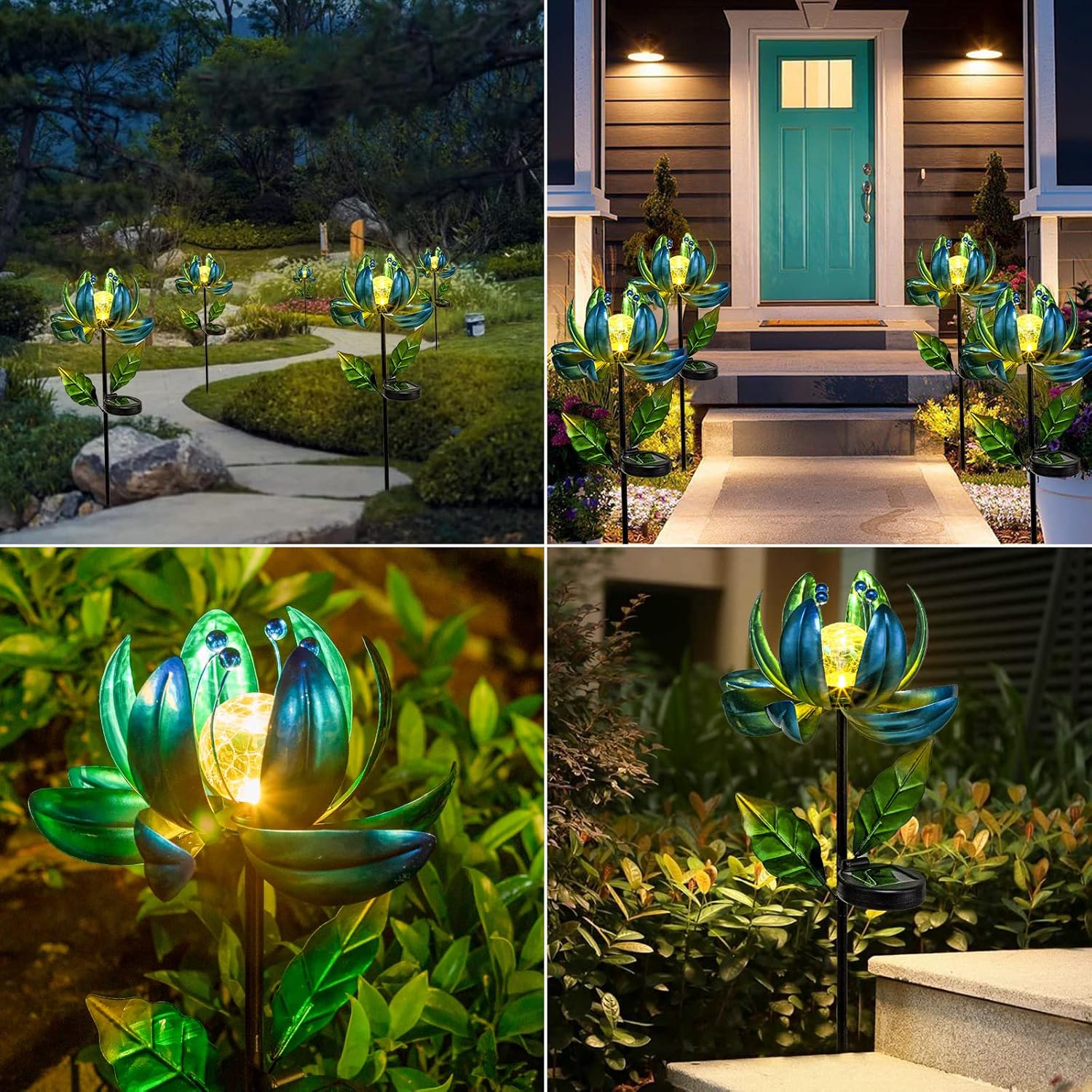 - Gorgeous Garden Decor: Outdoor solar lantern has a unique and decorative design,Inspired by elegant lotus, brings fun and whimsical charm to your garden.a striking wind spinner by day, a spectacular light show by night.