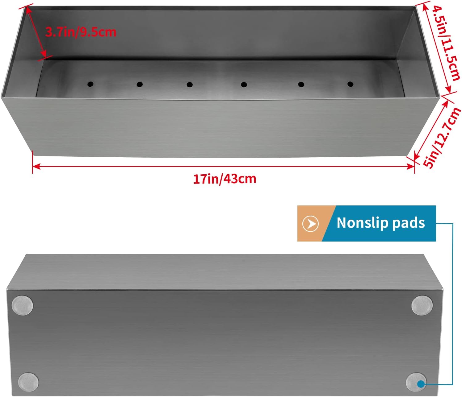 - DIMENSION: Outer size: 17" x 4.5" x 5"(L×W×H), perfect for narrow space like windowsill, mantel, floating shelf, top of partition wall, or use as long centerpiece on tabletop (Comes with nonslip pads to increase stability and prevent scratching countertop)