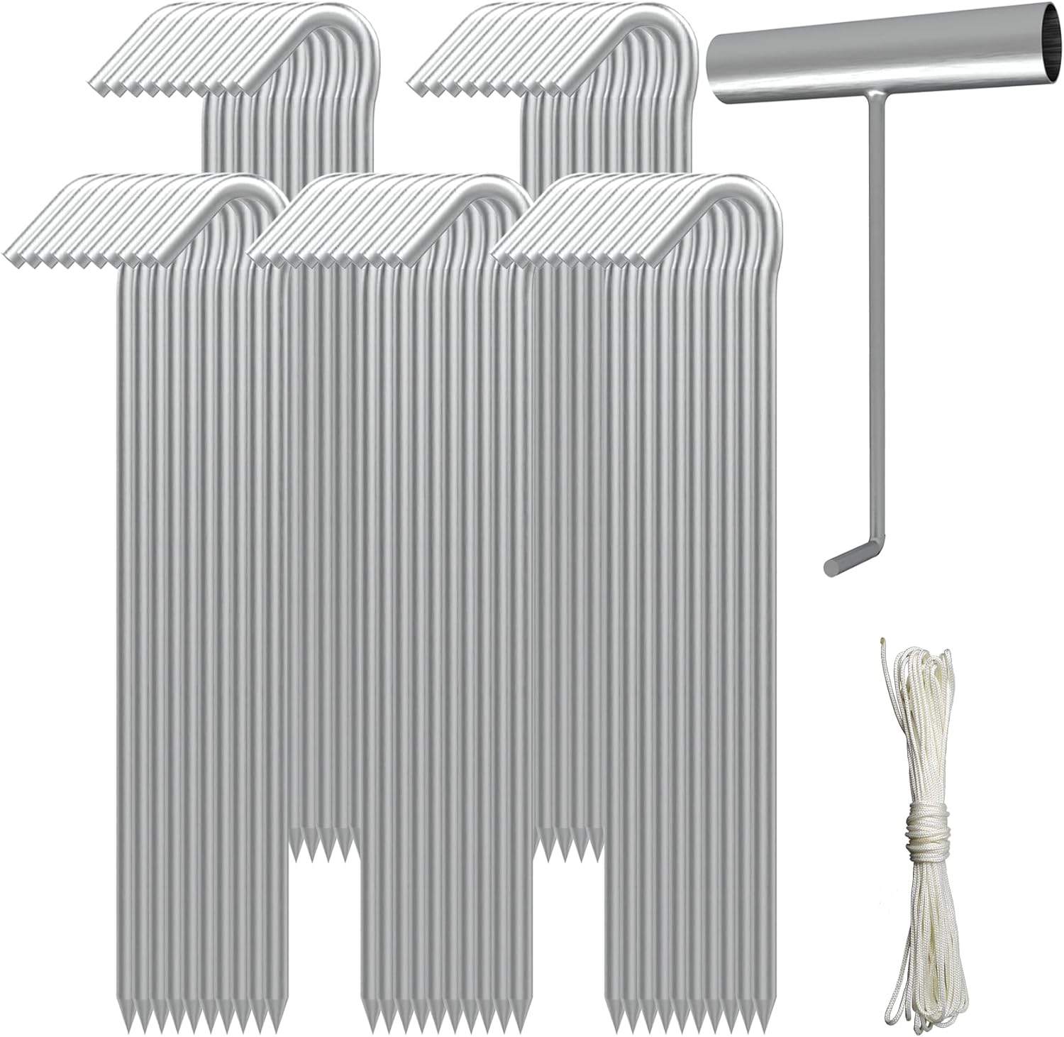 AAGUT Tent Stakes, Tent Stake Metal Garden Edging Fence Hooks Yard Camping Stake Heavy Duty Galvanized 9 Inch (9 Inch Tent Stakes KIT, 50)
