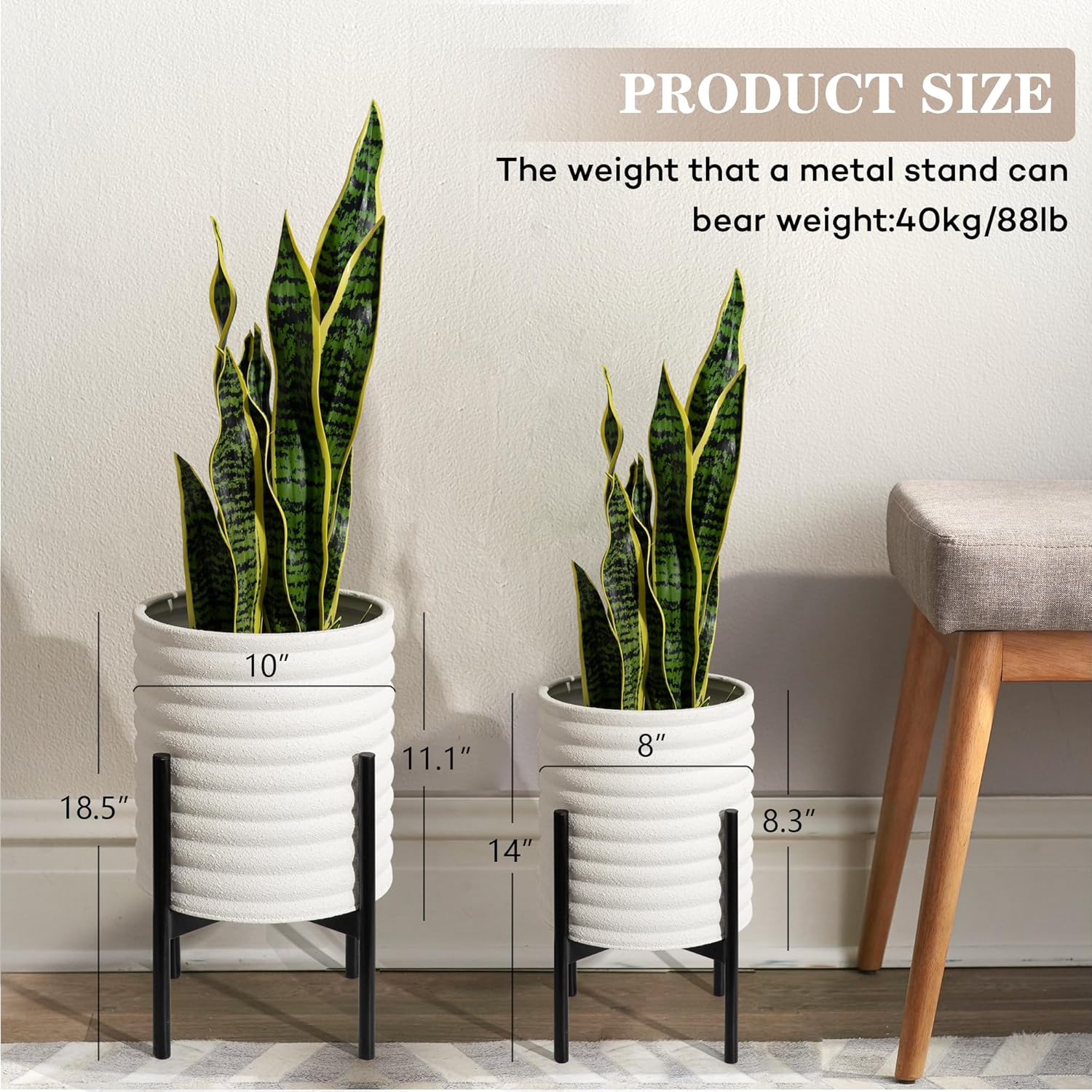 - Planter with Stand: Add a natural touch to any room with this Planter with Stand. Showcase your favorite plants in your living room, bedroom, patio, garden, or office. which will create an intriguing natural focal point and brighten up your living place.
