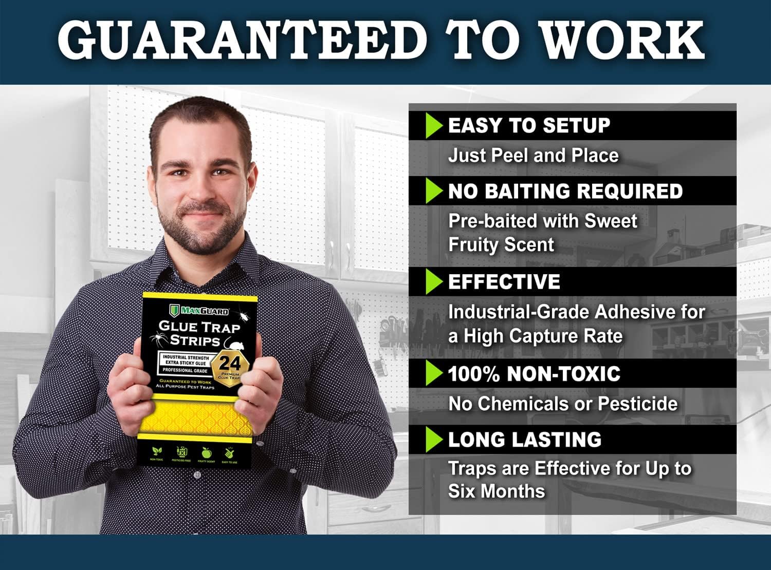 - ✅ WHAT YOU GET: Each box comes with 24 pre-baited glue trap strips that are guaranteed to work.