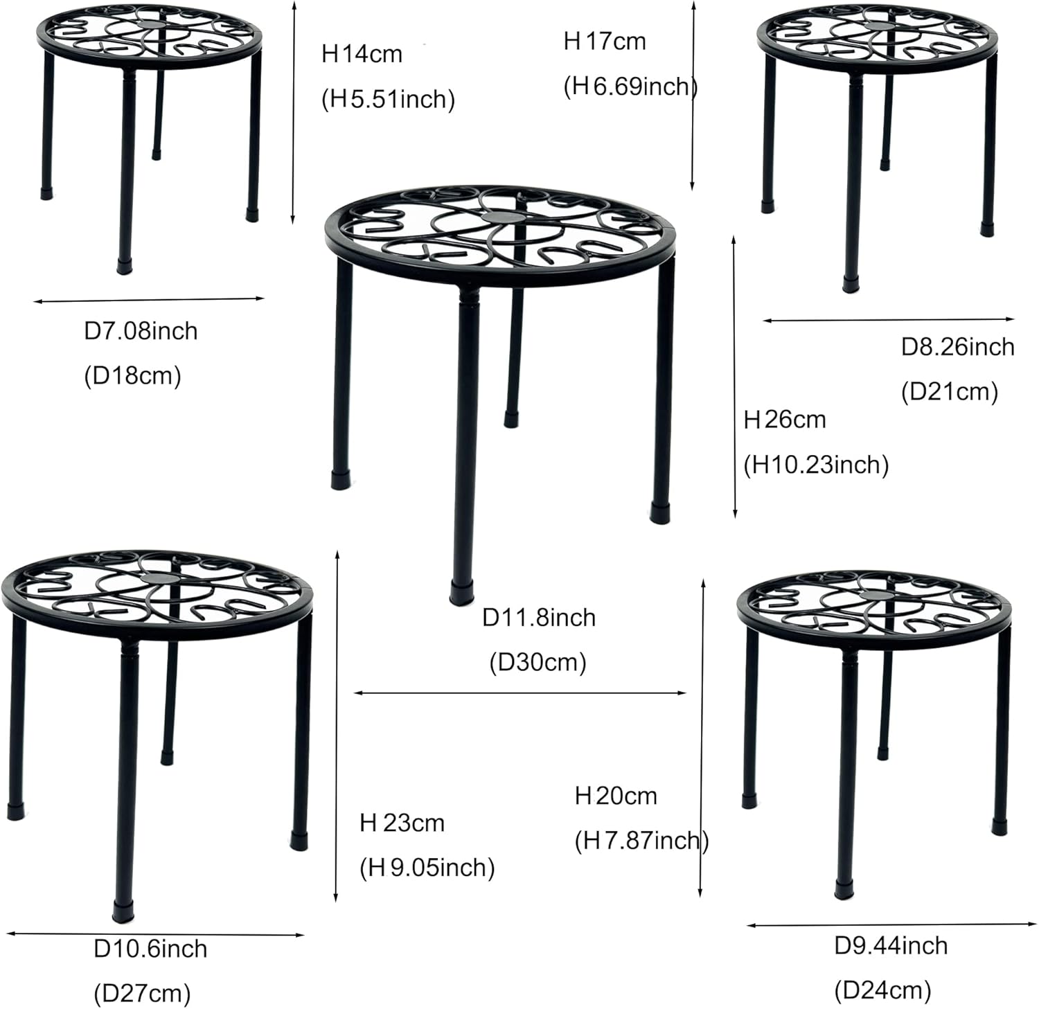 - 5-SIZE PACK MULTIPURPOSE METAL PLANT STAND: The 5 Sizes metal plant pots stand are applying for different sizes of plant pots, with 4 supporting points which will make flower pots stand stably. This plant shelf can be widely used indoor and outdoor for garden pots, large vases, potted plants and beverage dispensers.