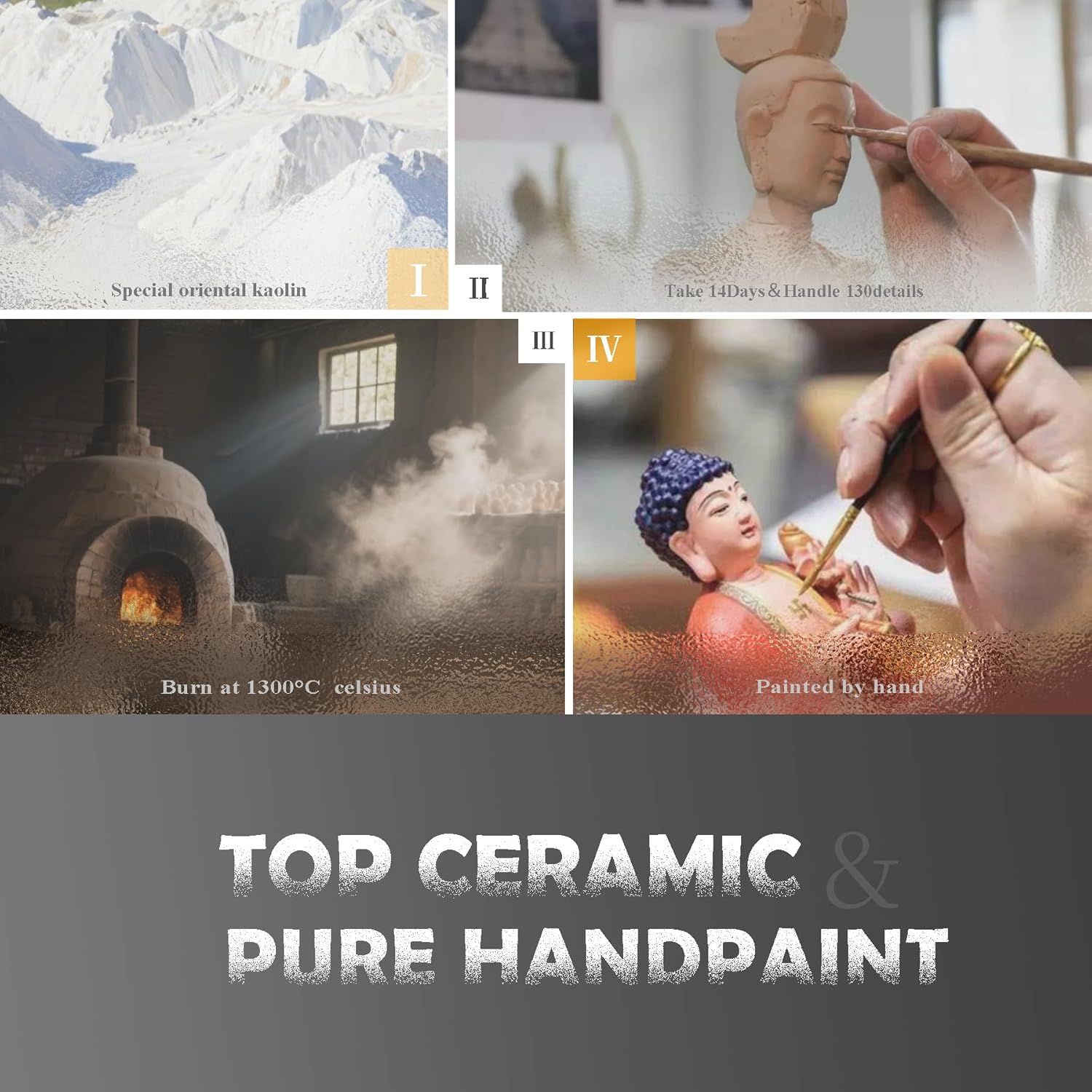 - 2.✅ 𝐓𝐨𝐩 𝐂𝐞𝐫𝐚𝐦𝐢𝐜 --- Handcrafted by top ceramic masters. Made of a special oriental soil. White as milk or snow. Color such as sheep fat, white jade, scallion white, without any impurities. 🧘 Geographical indication products, enjoyed the reputation of ceramic pearl. Perfect ceramic buddha statue indoor, buddha statue outdoor, buddha statues for home. 🎁