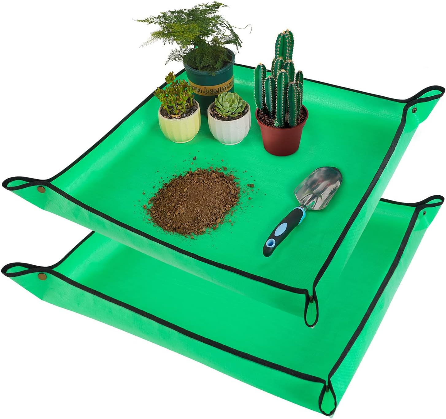 2 PCS 27 "x 27" Repotting Mat for Indoor Plant Transplanting and Mess Control Thickened Waterproof Potting Tray Foldable Succulent Potting Mat Portable Gardening Mat Green