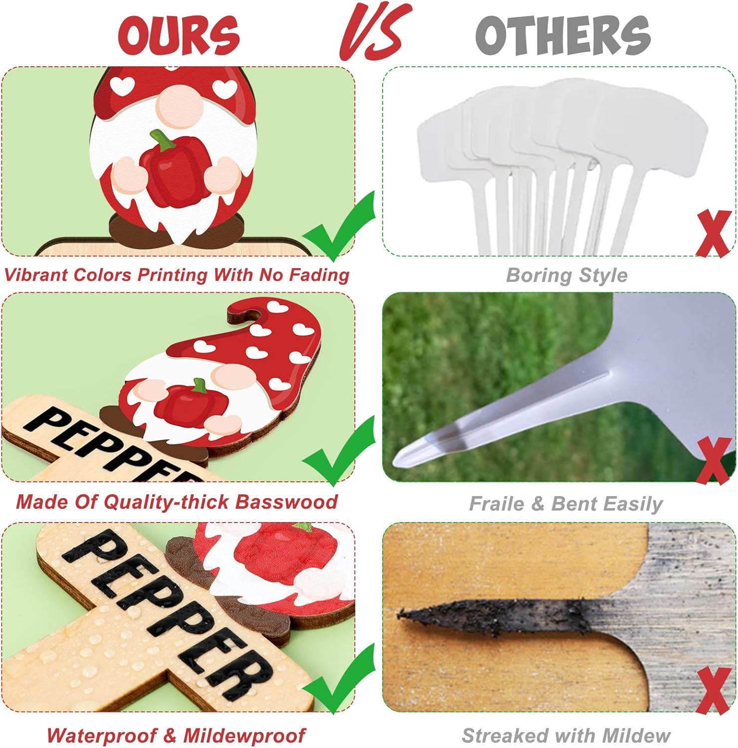 Huray Rayho Gnome Wooden Plant Markers for Vegetable Flowers Garden Potted Plants Tags 15-Pack Funny Wood Plant Labels Garden Stakes Patio Decorations Funny Gifts for Plant Lady Woman Novelty Gift