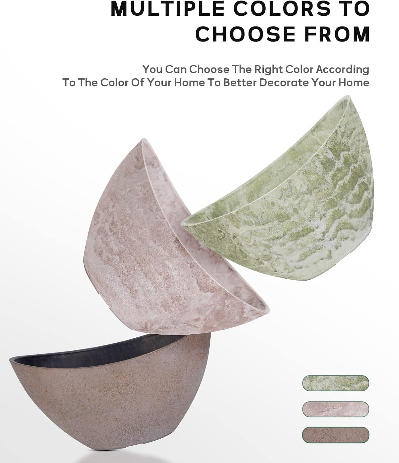 - 【Unique Design】 Unlike other plant pots, it is oval-shaped and has a unique appearance design like a gold ingot, even without plants it can still decorate your home.These planters are the perfect decoration for home living room, bedroom, front porch, balcony, desk, patio, office and garden, etc.(Note: There may be slight color differences)