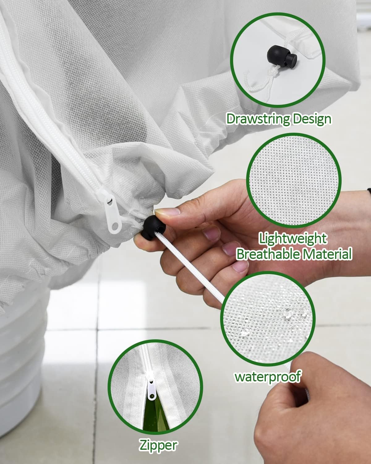 - SIMPLE DESIGN, CONVENIENT USE: The simple zipper and drawstring design makes it easy to put on and take off the plant frost blankets from outdoor plants, whether it's a quick cover before a heavy snowfall, or a meticulous inspection after the sun comes out, it is convenient to operate