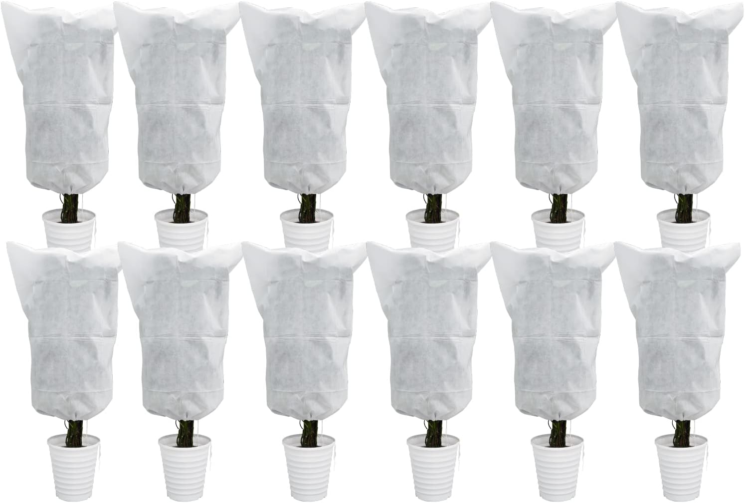 EAONE 12 Pack Plant Covers Freeze Protection, 24x32'' Winter Frosts Cloth for Outdoor Plants, Reusable Frost Blankets Drawstring Bags for Cold Freeze Sun Protection Bird Insect Prevention,White