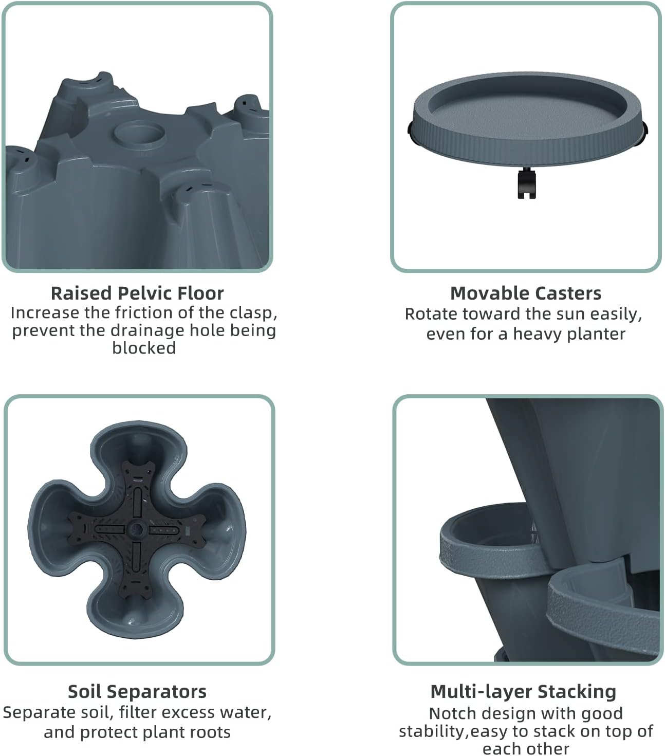 Strawberry Vertical Planters Tower Garden, 5 Tiered Stacking Planter with Support Pole, Stackable Herb Vegetable Planters Indoor and Outdoor - Dark Grey