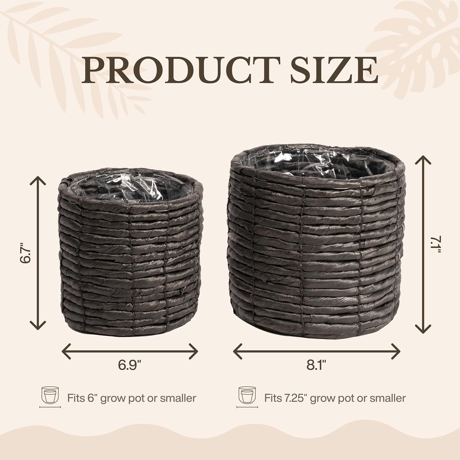 Set of 2 Water Hyacinth Planter Pot Indoor for Plant, Flower Pot, Succulent Pot, Basket Planter, Decorative Pot Cover (Black)
