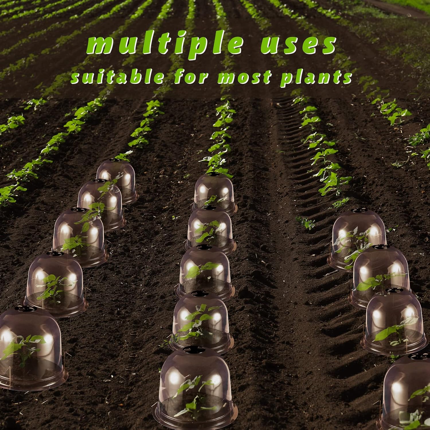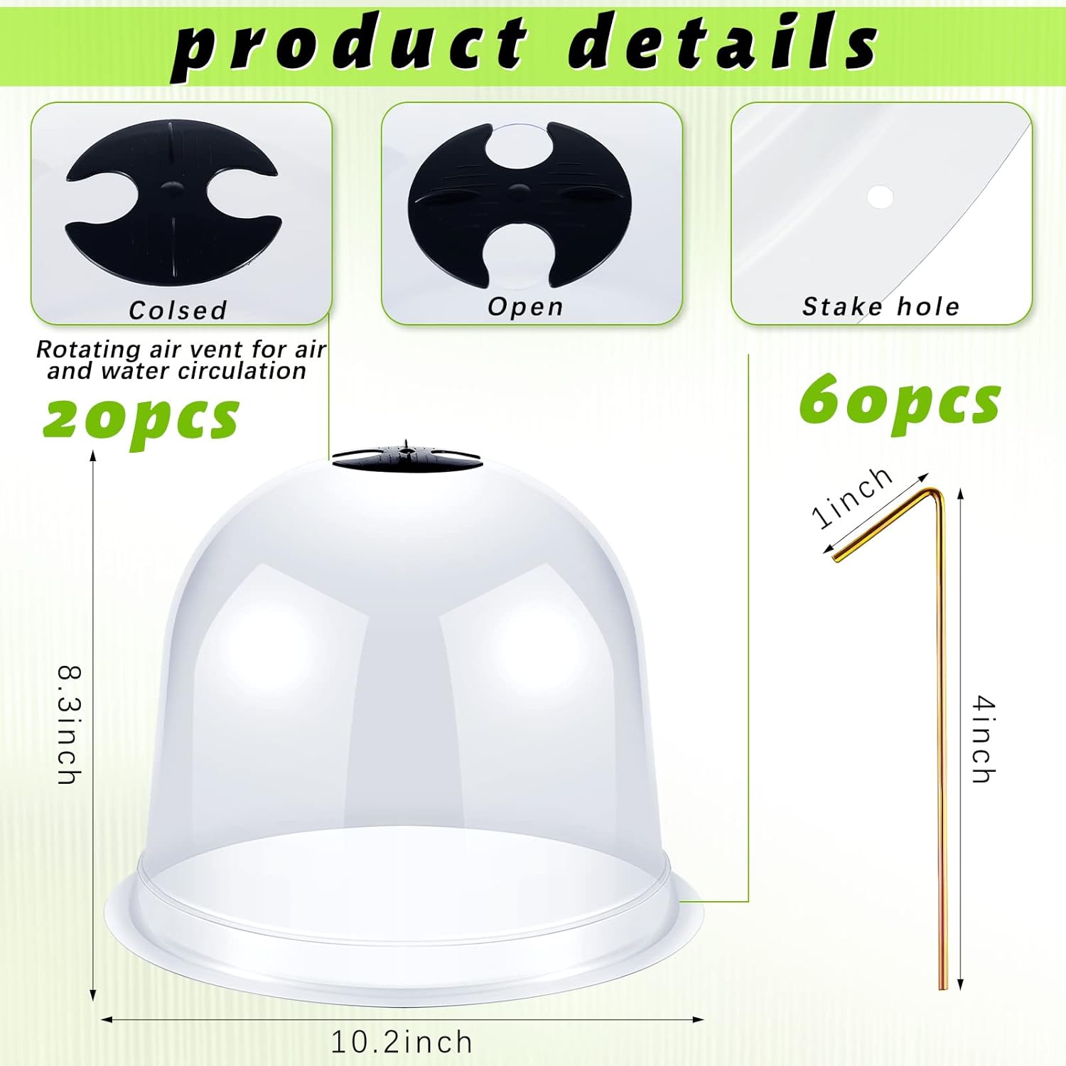 - Adjustable Vents Design: each plant bell cover is designed with vent holes on the top, you can adjust to open and close the vent holes by rotating the black plastic sheets, which can easily control the temperature and humidity
