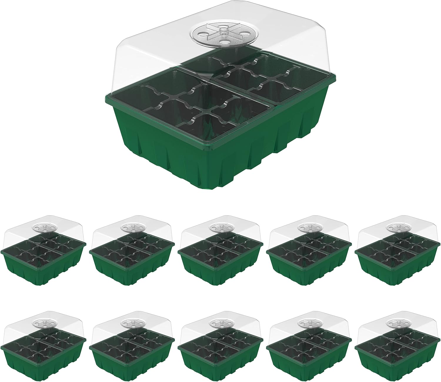 Gardzen 10-Set Garden Propagator Set, Clear Seed Tray Kits with 120-Cell, Seed Starter Trays with Dome and Green Base 6.6" x 4.5" (12-Cell Per Tray)