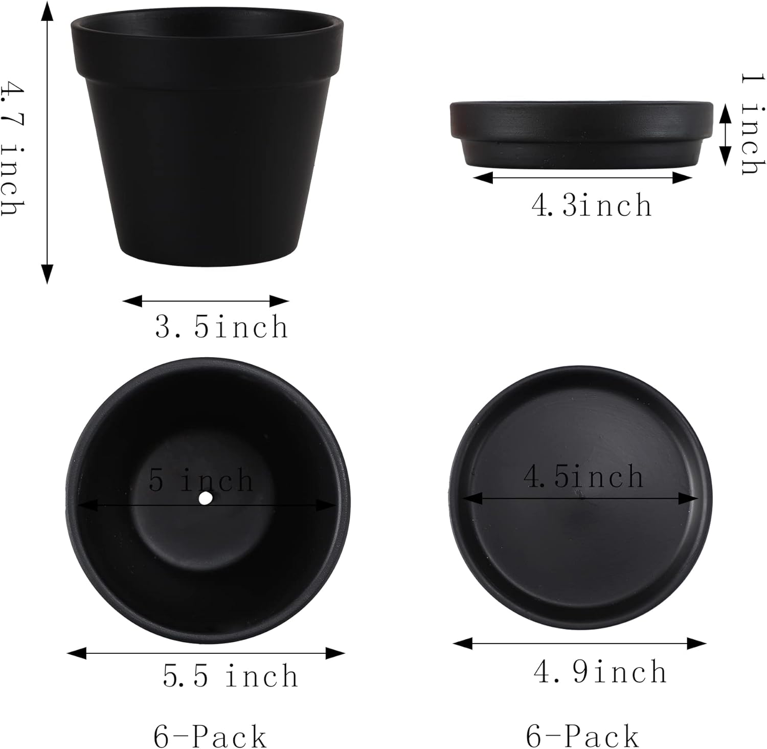 Terra Cotta Pots with Saucer- 6-Pack Large Terracotta Pot Clay Pots 5.5'' Clay Ceramic Pottery Planter Cactus Flower Pots Succulent Pot with Drainage Hole- for Plants,Crafts terra cotta planter(Black)