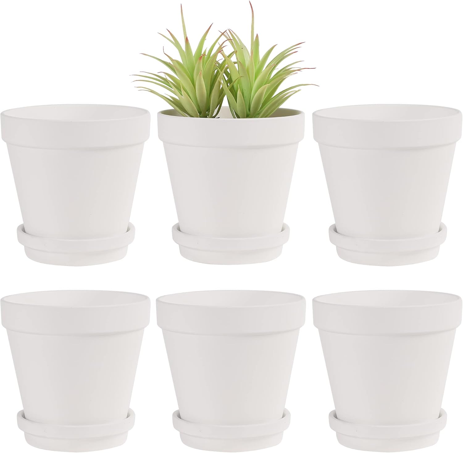 Yishang Large Terra Cotta Pots with Saucer- 6 Pack Large 6'' Terra Cotta Plant Pot with Drainage Hole, Flower Pot with Tray, Terracotta Pot for Indoor Outdoor Plant(White)