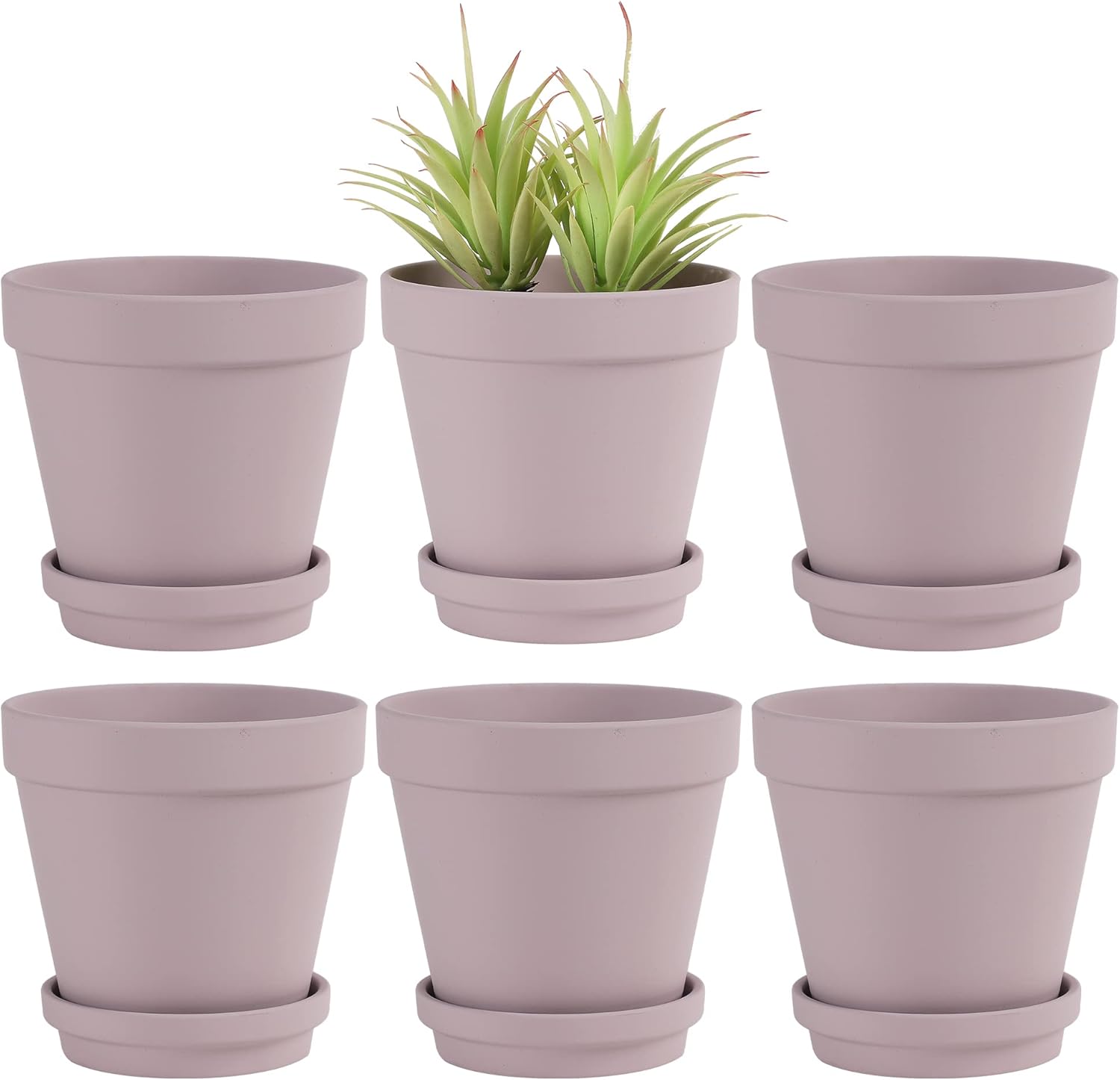 Yishang Large Terra Cotta Pots with Saucer- 6 Pack Large 6'' Terra Cotta Plant Pot with Drainage Hole, Flower Pot with Tray, Terracotta Pot for Indoor Outdoor Plant(Purplr)