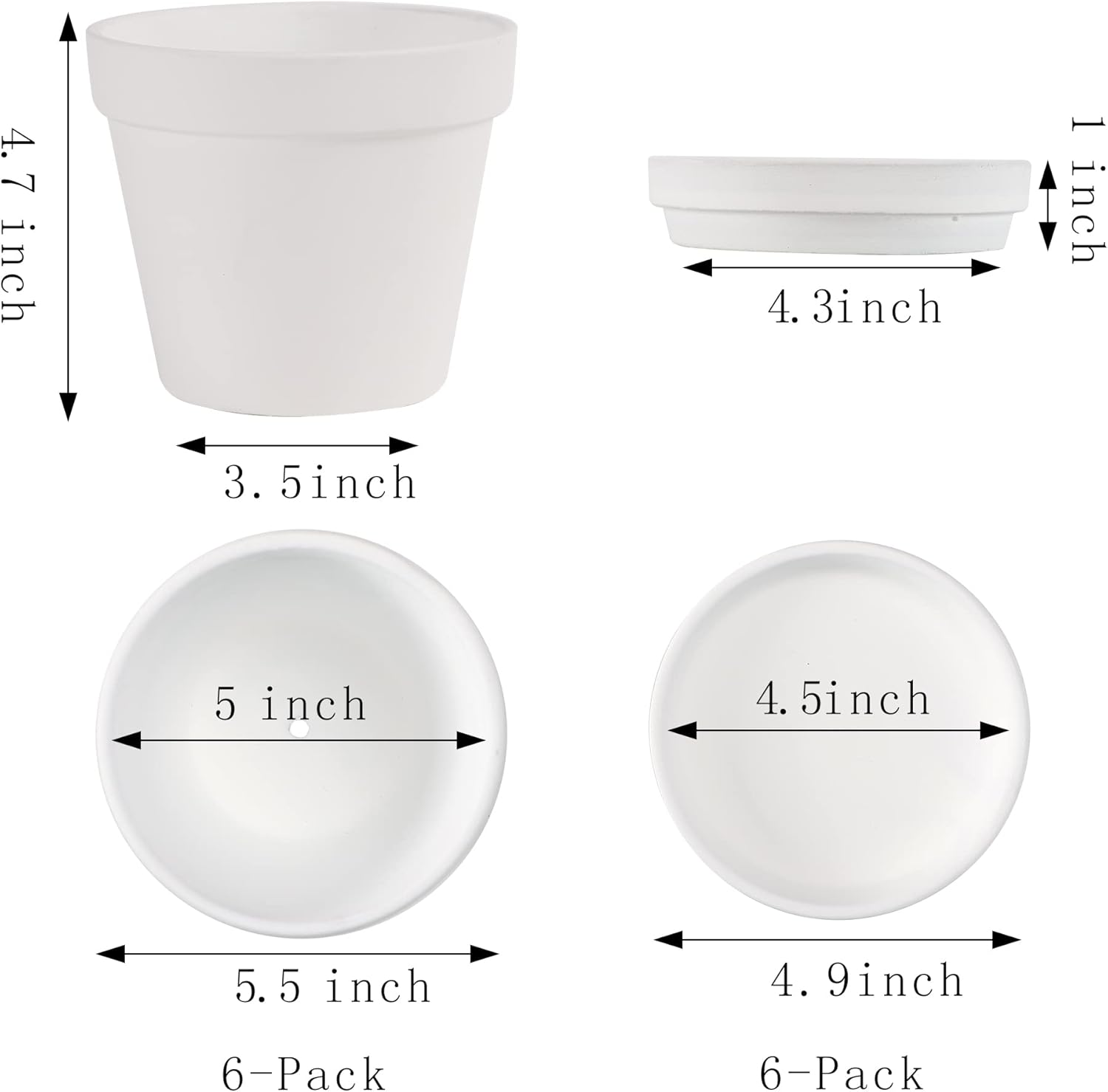 Terra Cotta Pots with Saucer- 6-Pack Large Terracotta Pot Clay Pots 5.5'' Clay Ceramic Pottery Planter Cactus Flower Pots Succulent Pot with Drainage Hole- for Plants,Crafts terra cotta planter(White)