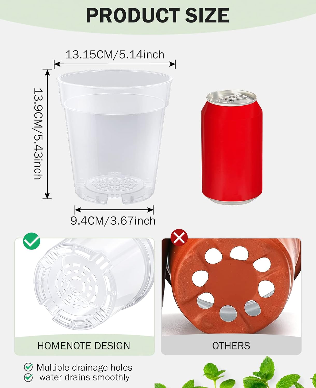 - 🌻【Abundant Drainage Holes】The bottom of these plastic plant pot comes with unique design drainage holes to keep the soil drained and ventilated, so the transparent planting pots allowing excess water to flow out and preventing root rot. The bottom of the plastic pots for plants are made raised, and the enhanced ventilation can improve the survival rate of the seeds.
