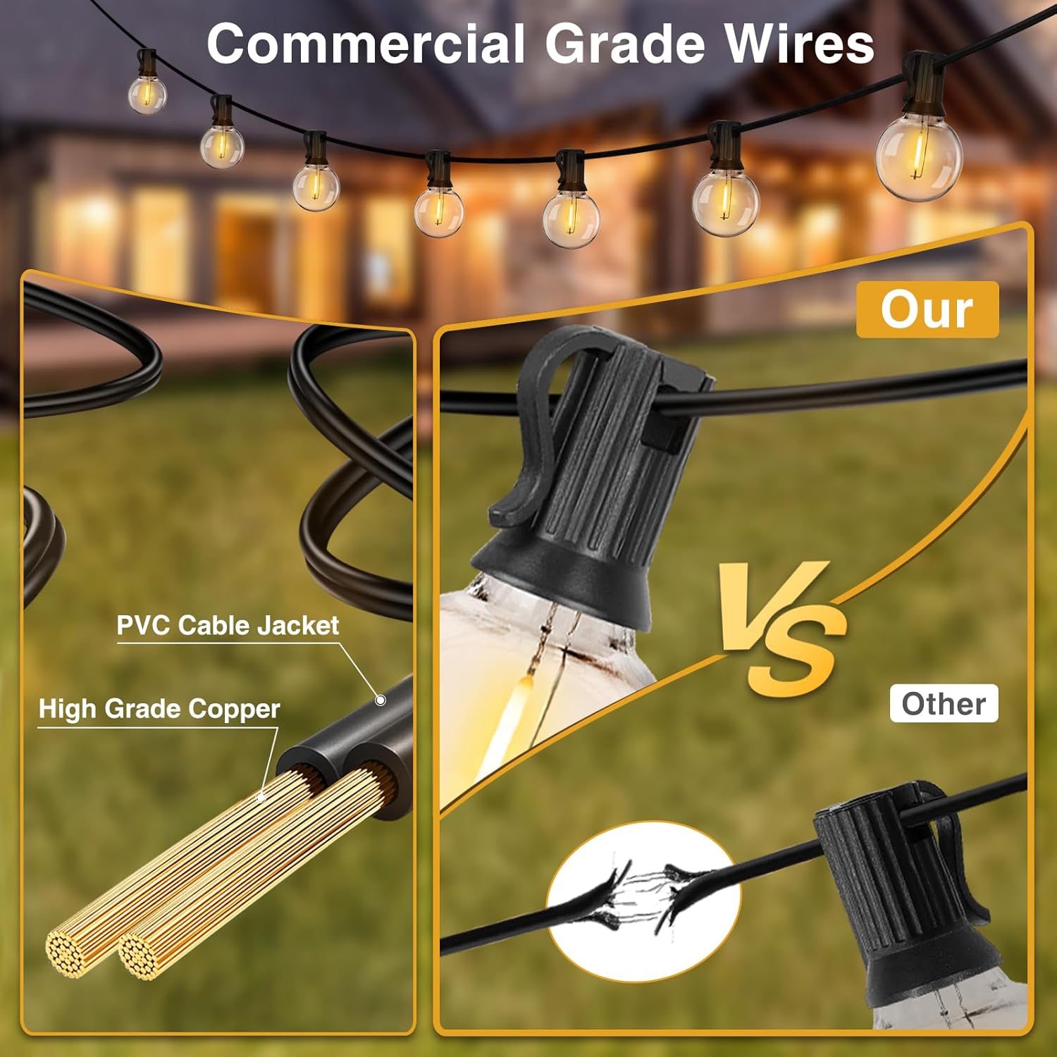 - Solar Power: These outdoor string lights are solar powered, so they can be charged during the day and provide light at night for up to 8 hours.