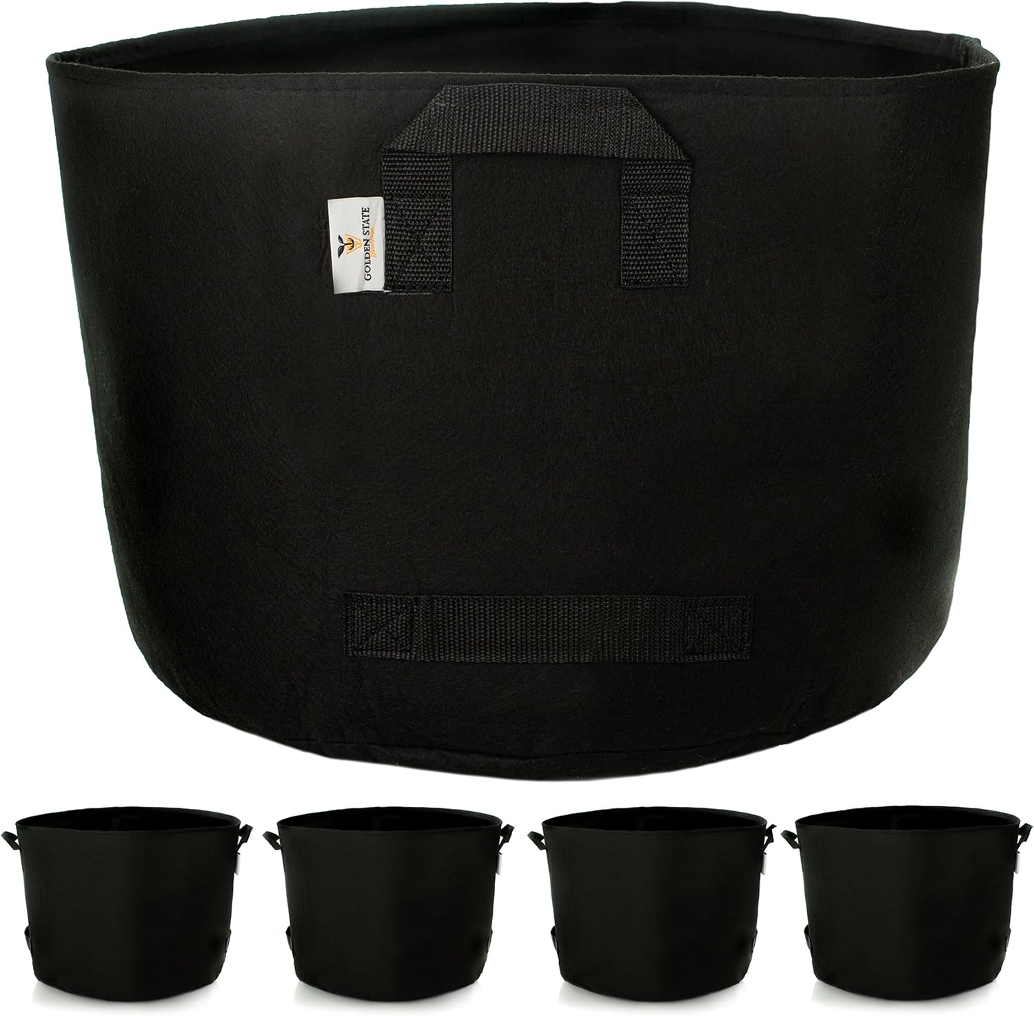 Grow Bags: 5-Pack (Size: 25 Gallon): 300gsm Black Felt Fabric, Biodegradable and eco-Friendly Material. (Handles + Dumping Handles-pat.Pend).