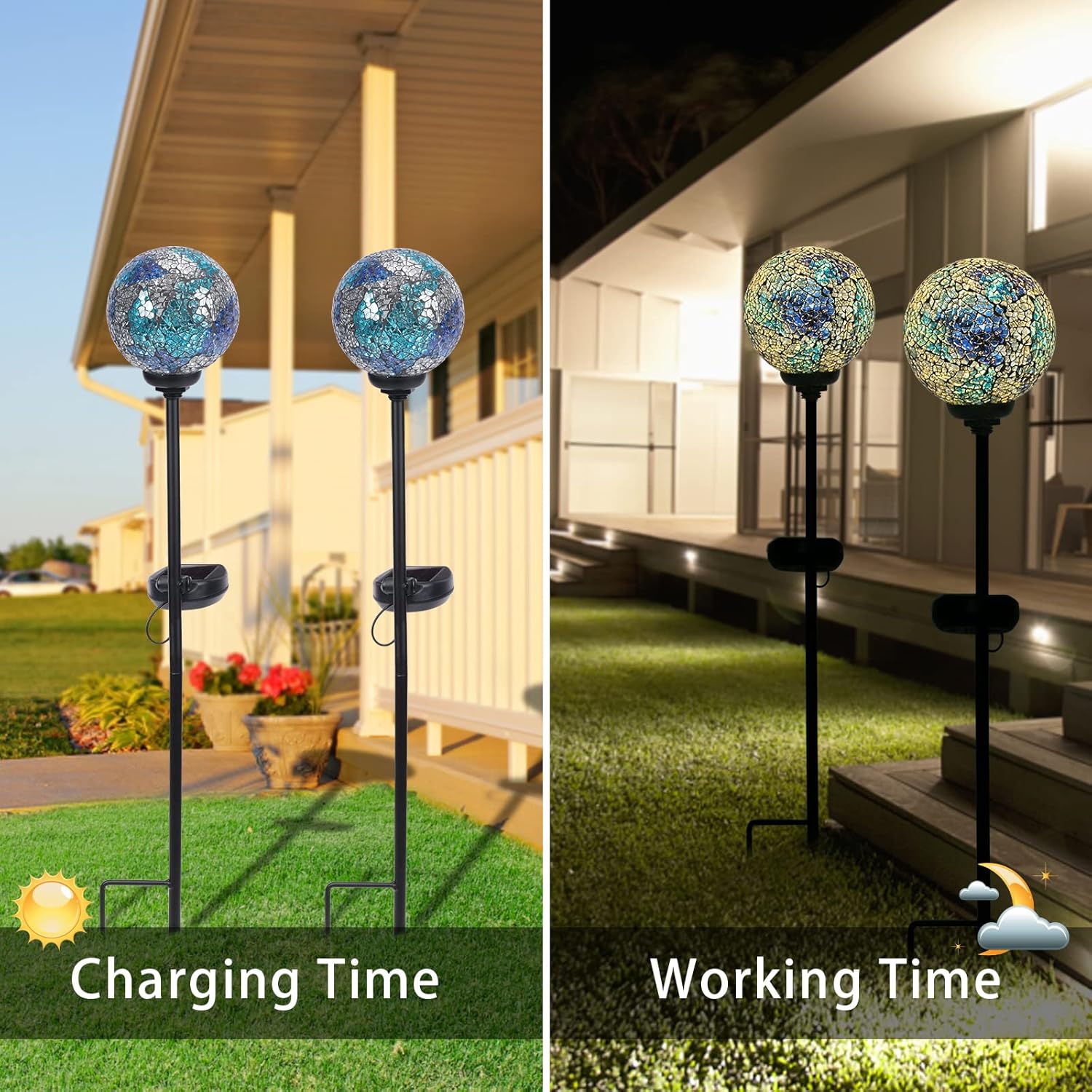 - 【Quality Assurance】2*Solar Powered Mosaic Ball Light. If you have any questions about solar lights, please contact us. and we will actively solve your problem