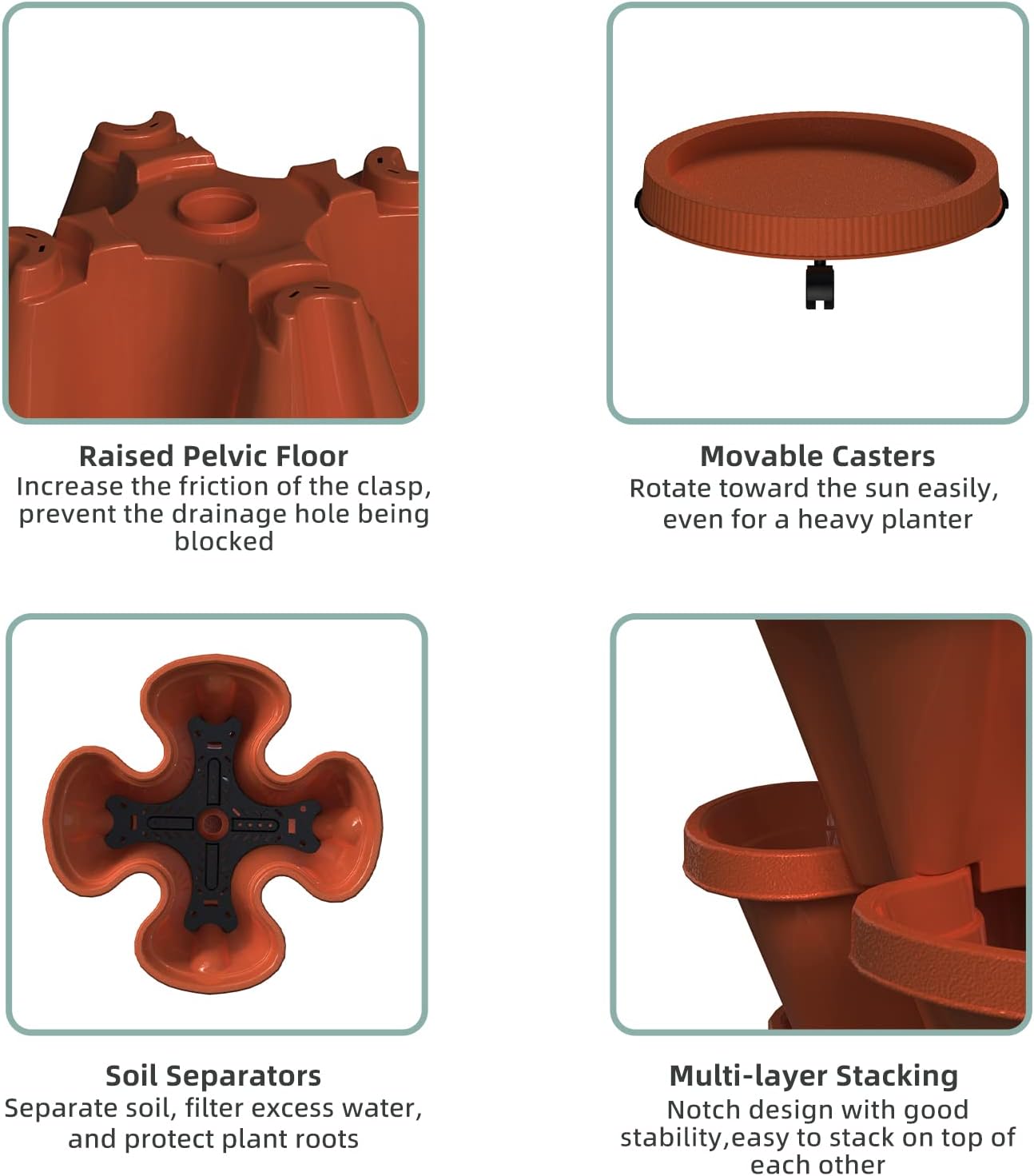 Strawberry Vertical Planter, 5 Tiered Stacking Garden Tower, Stackable Herb Vegetable Planters with Support Pole Indoor and Outdoor - Terra Cotta