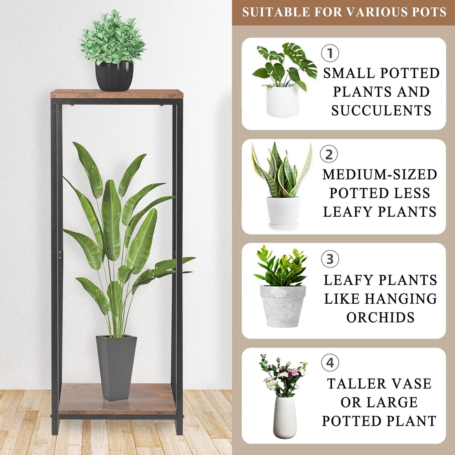 34" Tall Plant Stand Indoor, 2-Tier Modern Plant Shelf, Corner Flower Pot Holder Organizer for Living Room Balcony Patio Garden (Rustic Brown)
