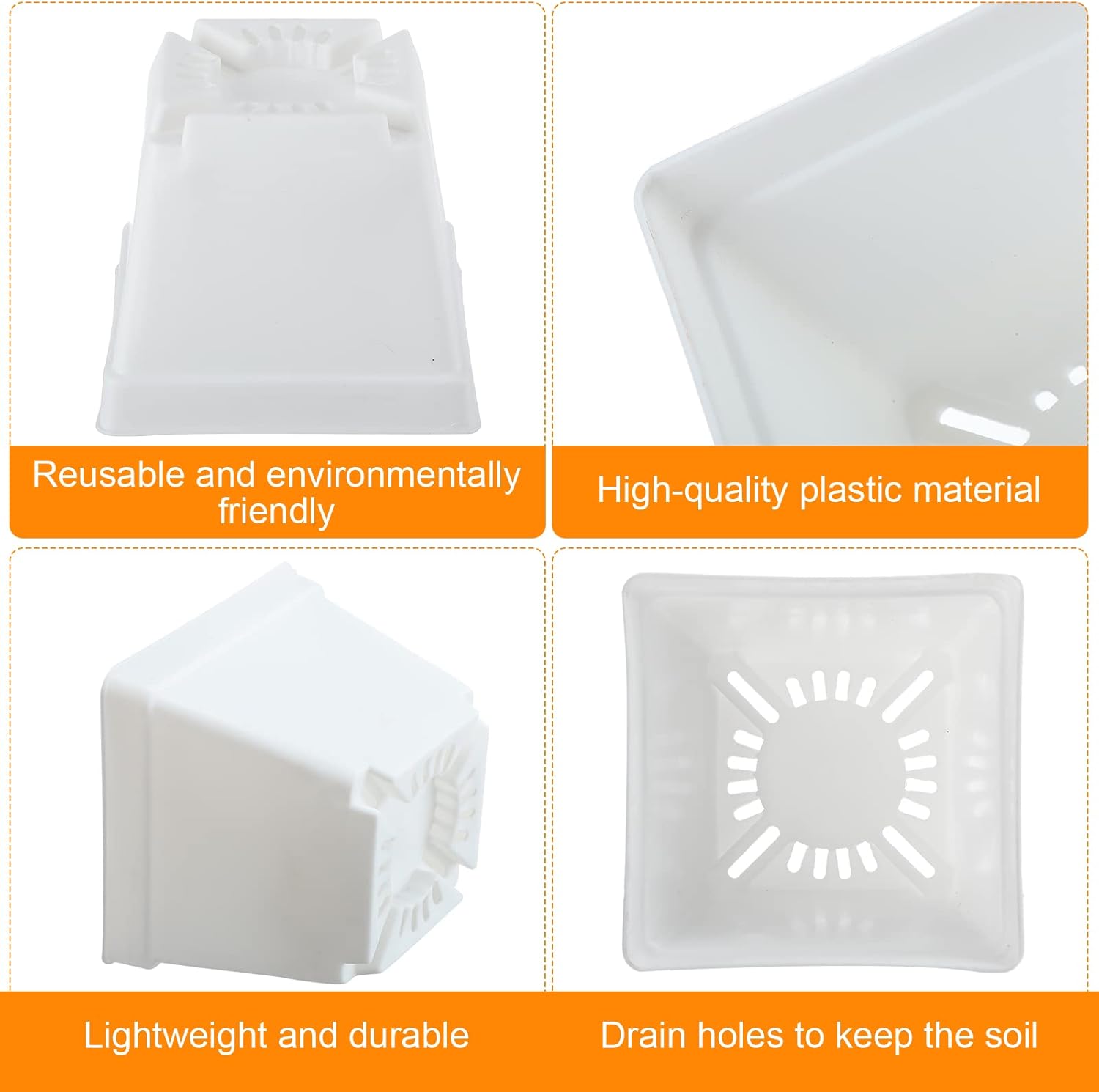 100 Pieces 4 Inch Flower Pots Square Plants Nursery Pot Plastic Plant Seedling Pots Nursery Transplanting Planter Container with Saucer for Indoor Herbs Succulents Balcony Garden Office (White)