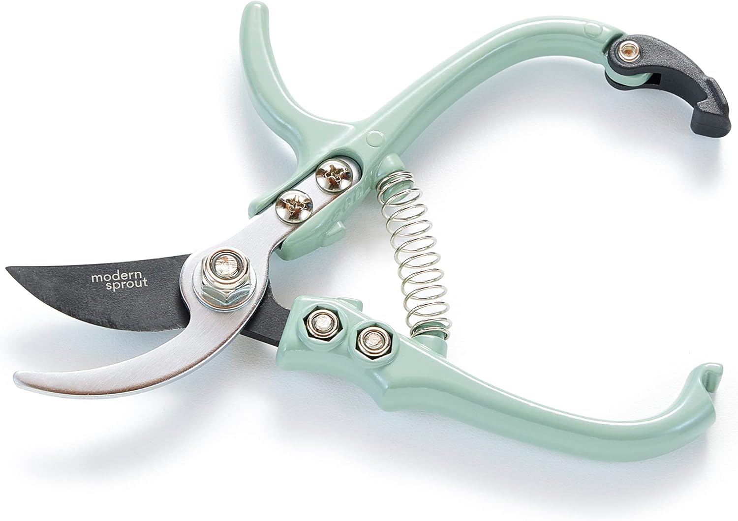 Modern Sprout Hand Pruners - Lightweight Pruning Shears W/Easy Lock- Gardening Scissors - Bypass Sharp Carbon Steel Blade - Rust Resistant - Garden Tools - Reusable Holster - Green