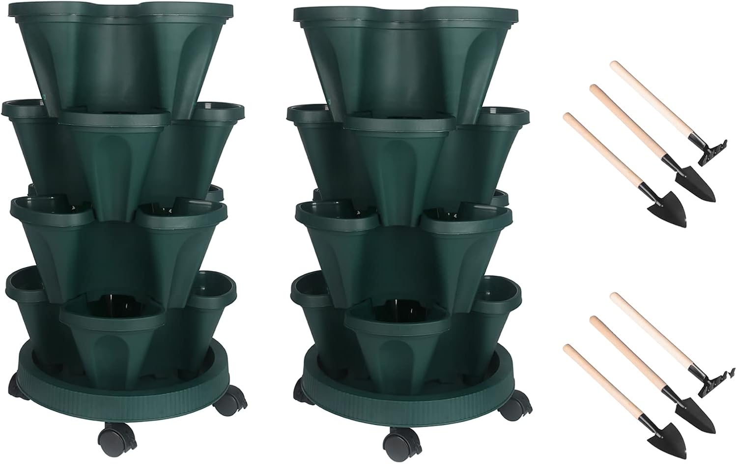 Vertical Planter 4 Tier Stackable Planters Garden Planters Strawberry Herb Flower and Vegetable Planter Indoor Outdoor Gardening Pots with Removable Wheels and Tools 2-Pack