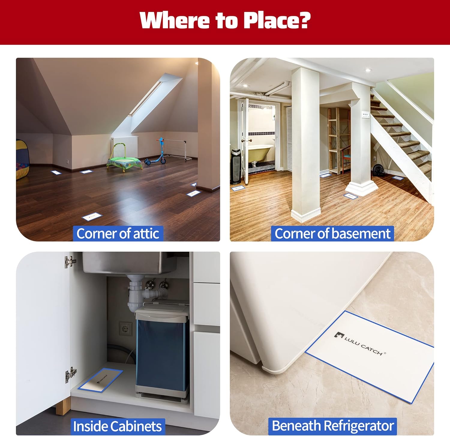 - Where to Place: We suggest you position sticky traps in the corner of attic and basement, under large kitchen appliances and inside cabinets, garages, fireplaces or other crickets runways. If glue boards trap few crickets in a place, we recommend you change locations and try again. Replace when full.