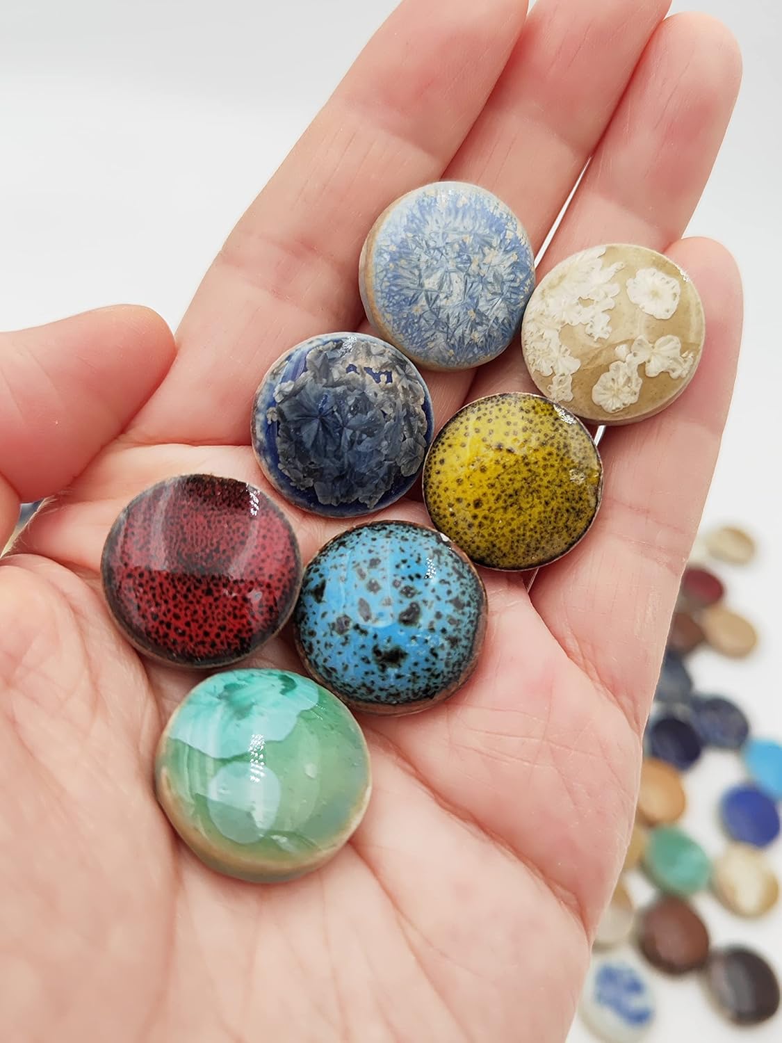- Feature: Ceramic mosaics , the surface is smooth, won't hurt your hands, uniform thickness, more brightly and beautiful in a closer distance; The color of these mosaics will never lose