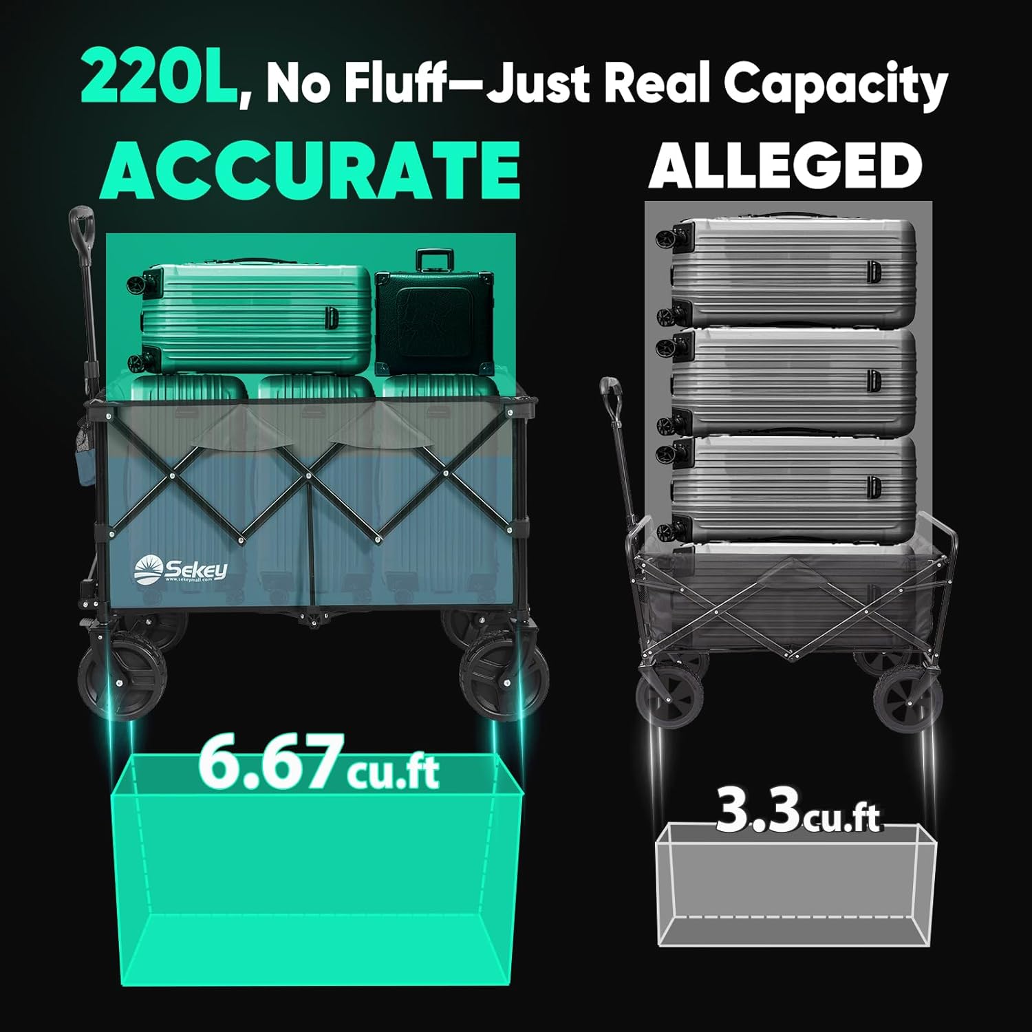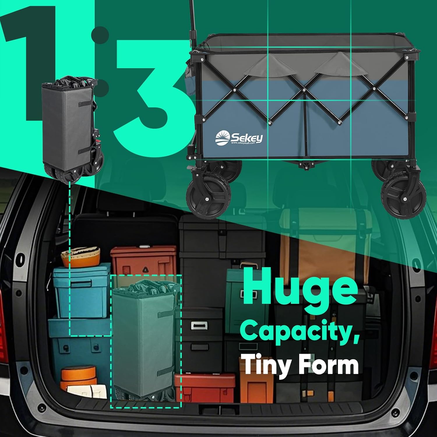 - 【𝐆𝐨 𝐀𝐧𝐲𝐰𝐡𝐞𝐫𝐞 𝐖𝐡𝐞𝐞𝐥𝐬】: Featuring 𝟖" 𝐝𝐢𝐚𝐦𝐞𝐭𝐞𝐫 𝐰𝐡𝐞𝐞𝐥𝐬 𝐚𝐧𝐝 𝟑" 𝐰𝐢𝐝𝐞 𝐭𝐫𝐞𝐚𝐝𝐬, Sekey wagon glides effortlessly over sand and rough terrain. The 𝐚𝐧𝐭𝐢-𝐬𝐥𝐢𝐩 𝐫𝐮𝐛𝐛𝐞𝐫 strip enhances traction and reduces vibrations, while the 𝐛𝐮𝐢𝐥𝐭-𝐢𝐧 𝐛𝐫𝐚𝐤𝐞𝐬 provide reliable stopping power wherever you go.
