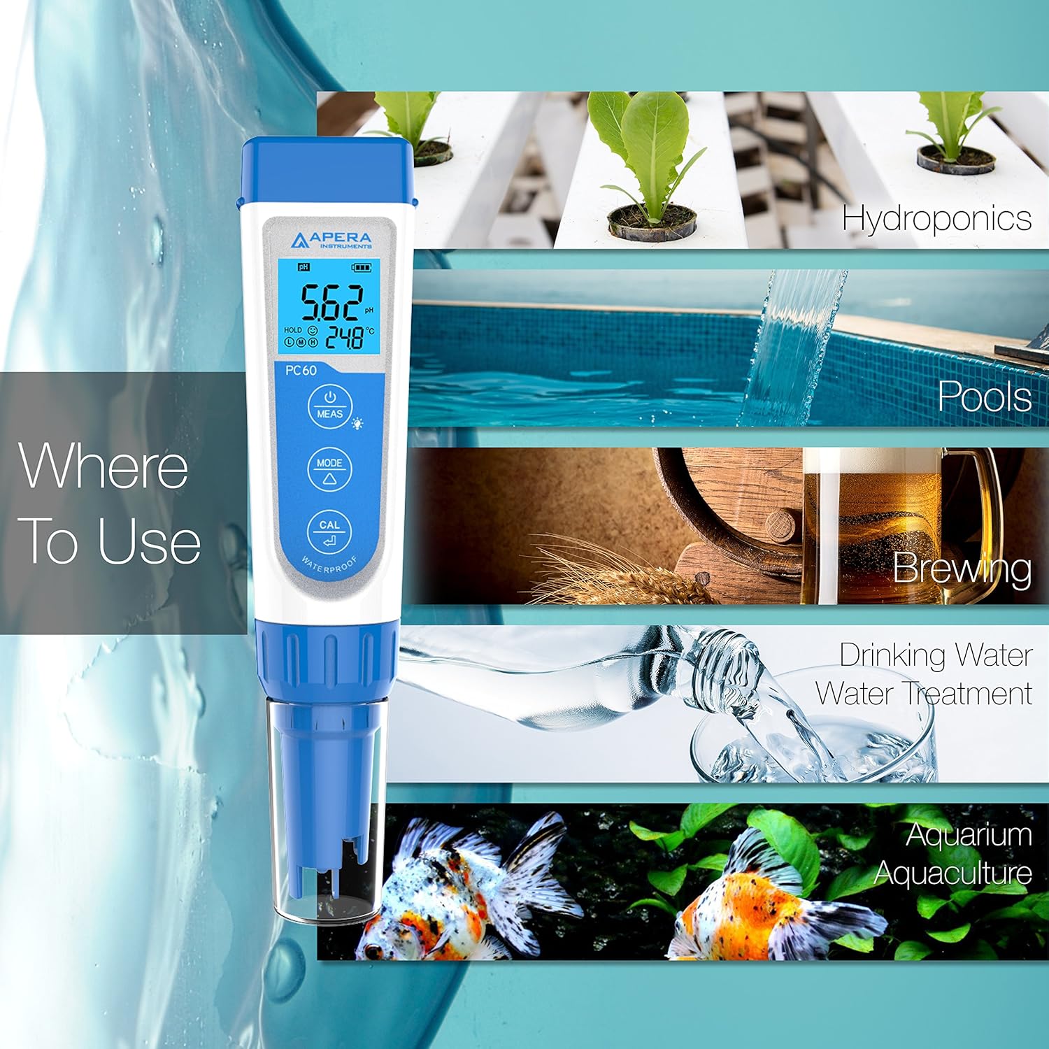 Apera InstrumentsAPERA Instruments AI316 Premium Series PC60 5-in-1 Waterproof pH/EC (Conductivity) & AI1113 pH Calibration Buffer Solution Kit (7.00, 4.00), 8 oz.