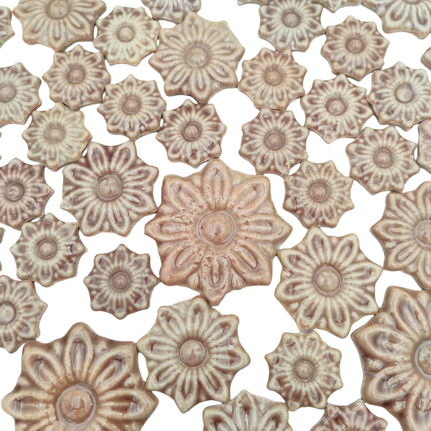- The Flower Mosaic Tiles 3 Size: Large Diameter: 2.52"; Medium Diameter: 1.85"; Small Diameter: 1.31" ; Thickness:0.23“;