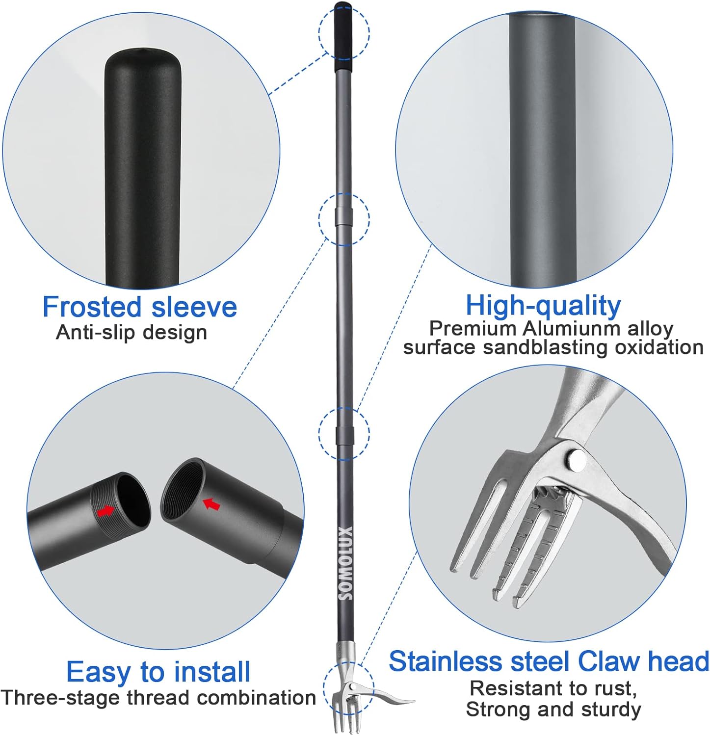 SOMOLUX 52'' Weed Puller Stand-up Weeder Weeding Tool for Gardening Heavy-duty Stainless Steel Claw with Long Metal Handle Weed Remove Tool for Lawn/Yard and Garden without Bending or Kneeling