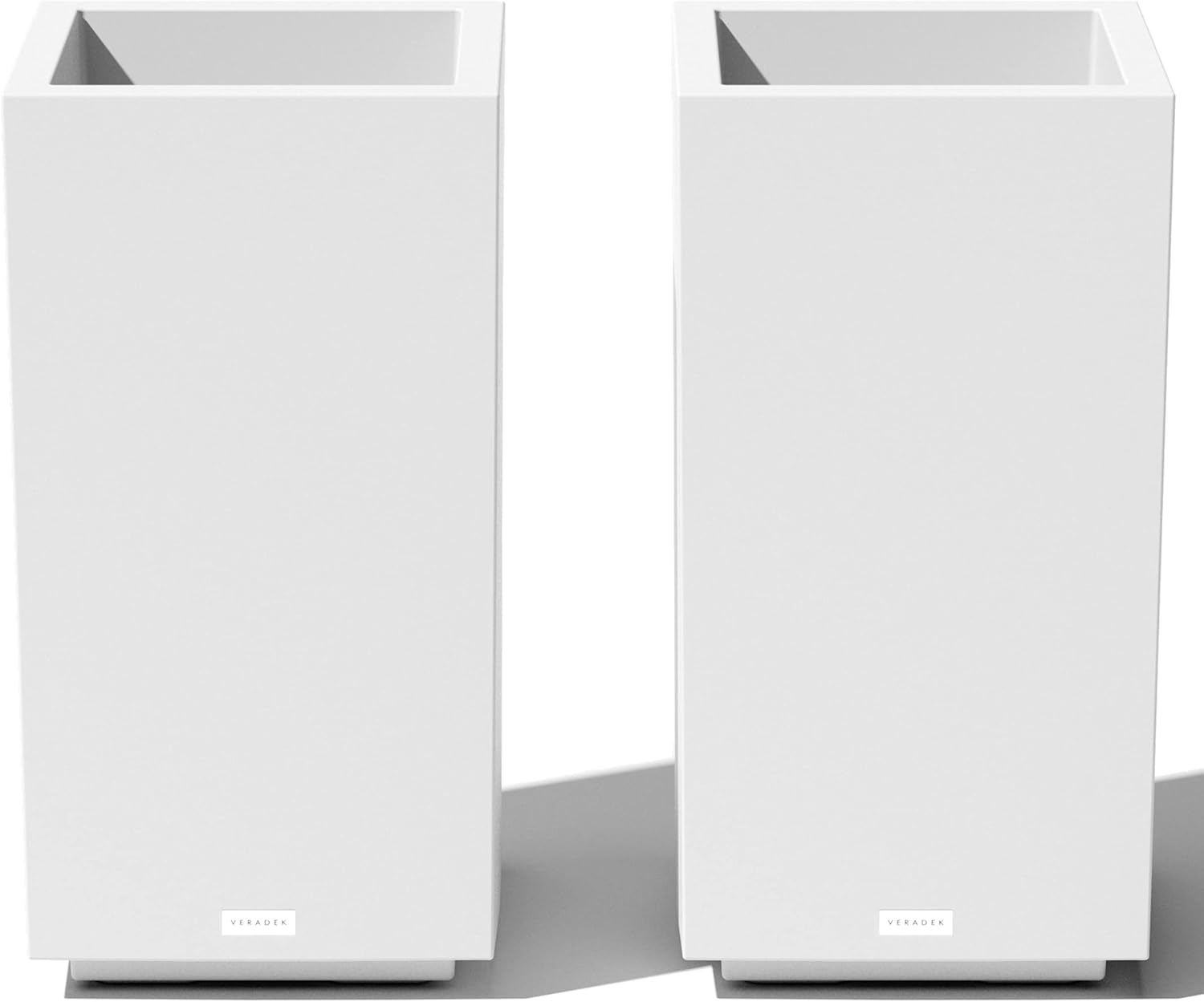 Veradek Block Series Pedestal Planter - Tall Planter for Indoor or Outdoor Front Porch | All-Weather Use with Removable Insert Bucket | Modern Décor for Flowers, Tall Trees, Faux Plants