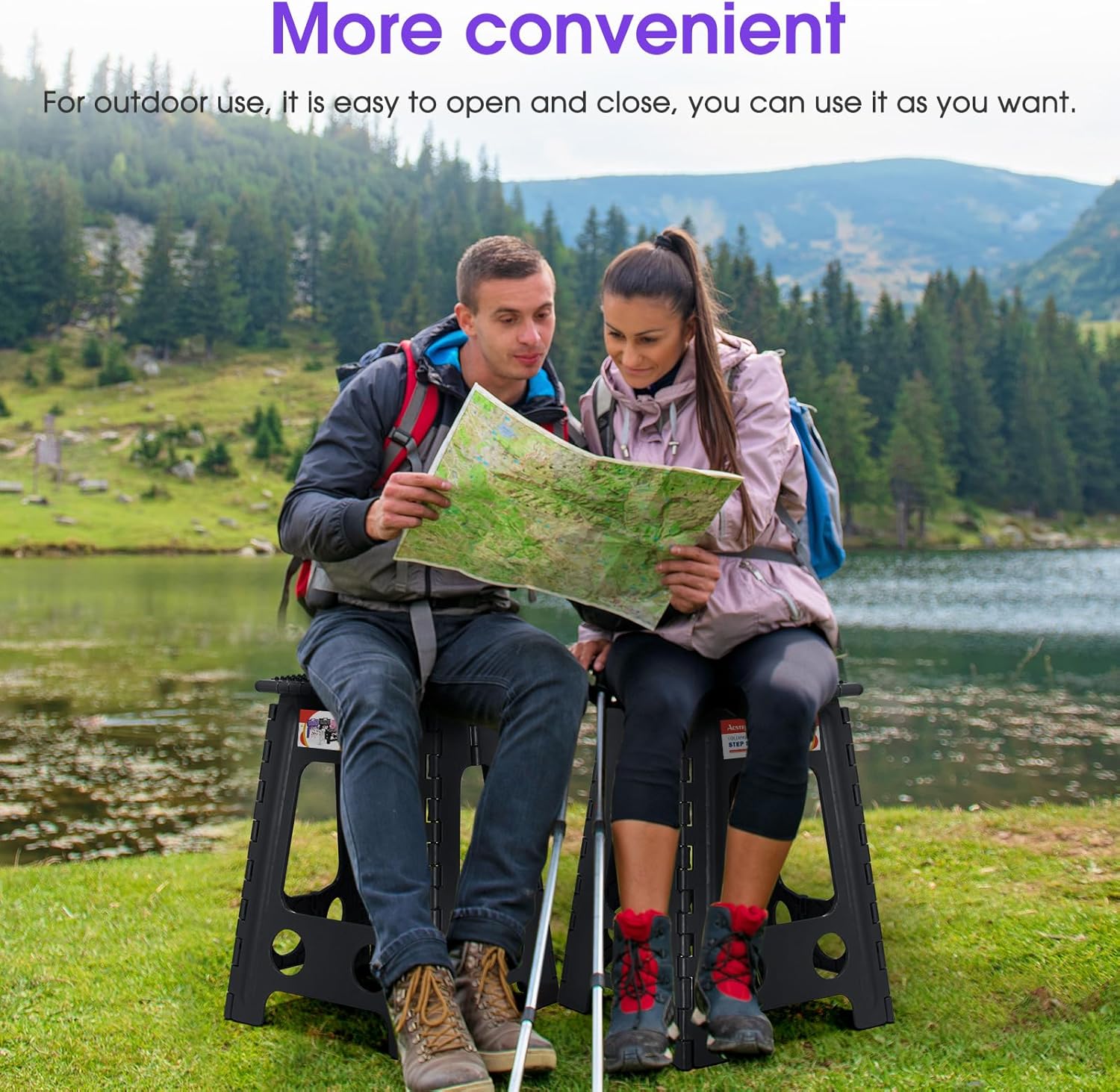 - Space-Saving & Portable: Our folding step stool is celebrated for its easy transport and storage capabilities. The foldable design allows you to carry it effortlessly to places like sporting events, camping trips, or anywhere you might need an extra boost in height.