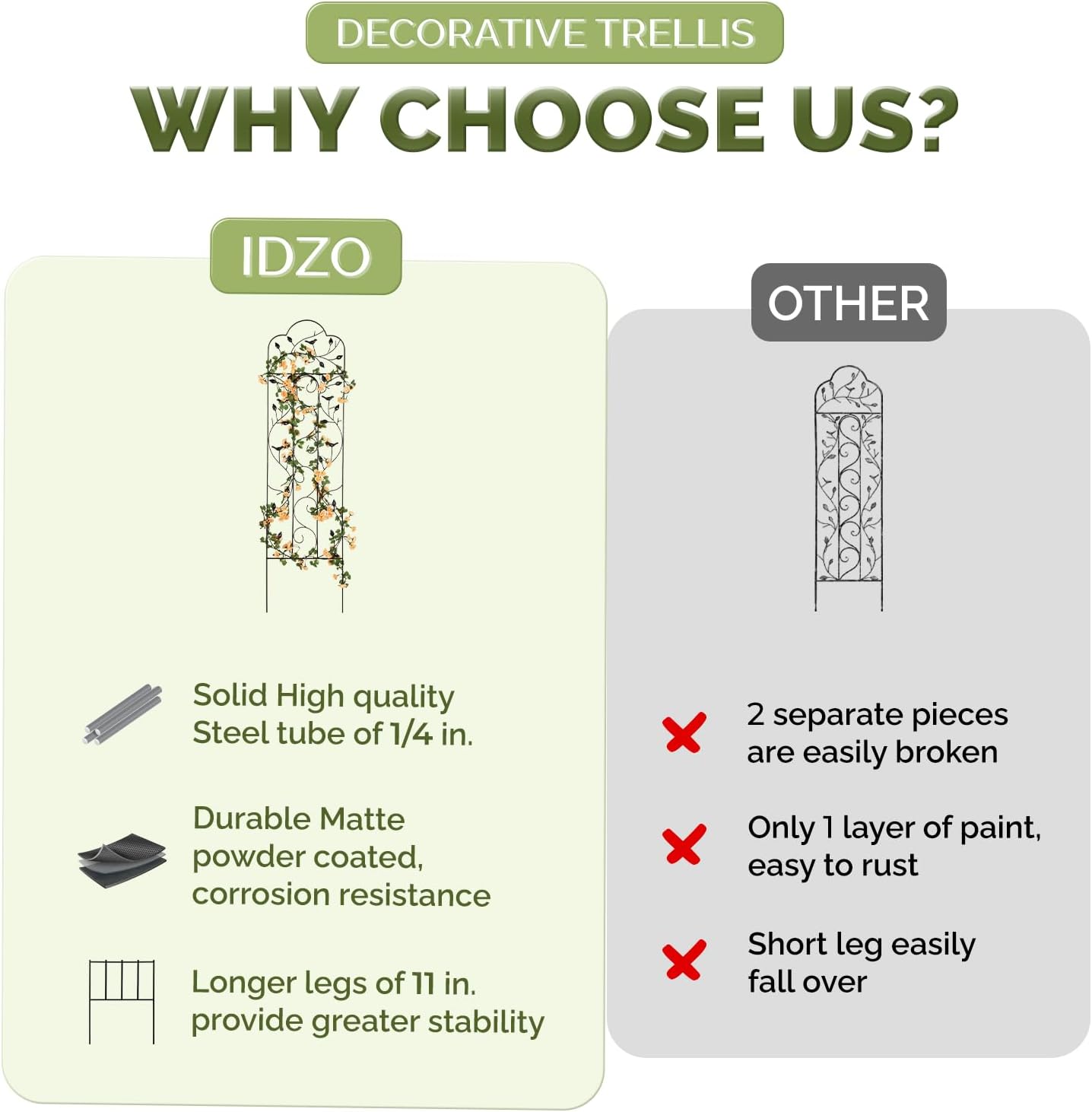 Idzo 60in 5ft 100% Metal Garden Trellises for Climbing Plants Outdoor, Heavy-Duty Steel Garden Trellis with Durable Powder Coating, Black