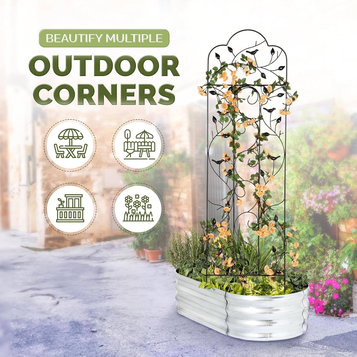 - 🎍 BUILT FOR LONG LASTING BEAUTY: The high quality steel trellis for climbing plants with outstanding strength and durability provides solid support for climbing plants; Its powder coating protects it from rust and corrosion, ideal for outdoor use