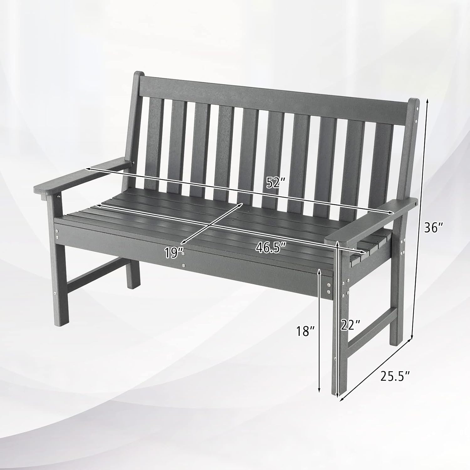 Giantex Outdoor Bench, 52-Inch Outside Bench All-Weather HDPE Park Bench with Backrest and Armrests, 705 lbs Weight Capacity, 2-Person Slatted Patio Bench for Porch, Yard, Lawn, Garden Bench (Grey)