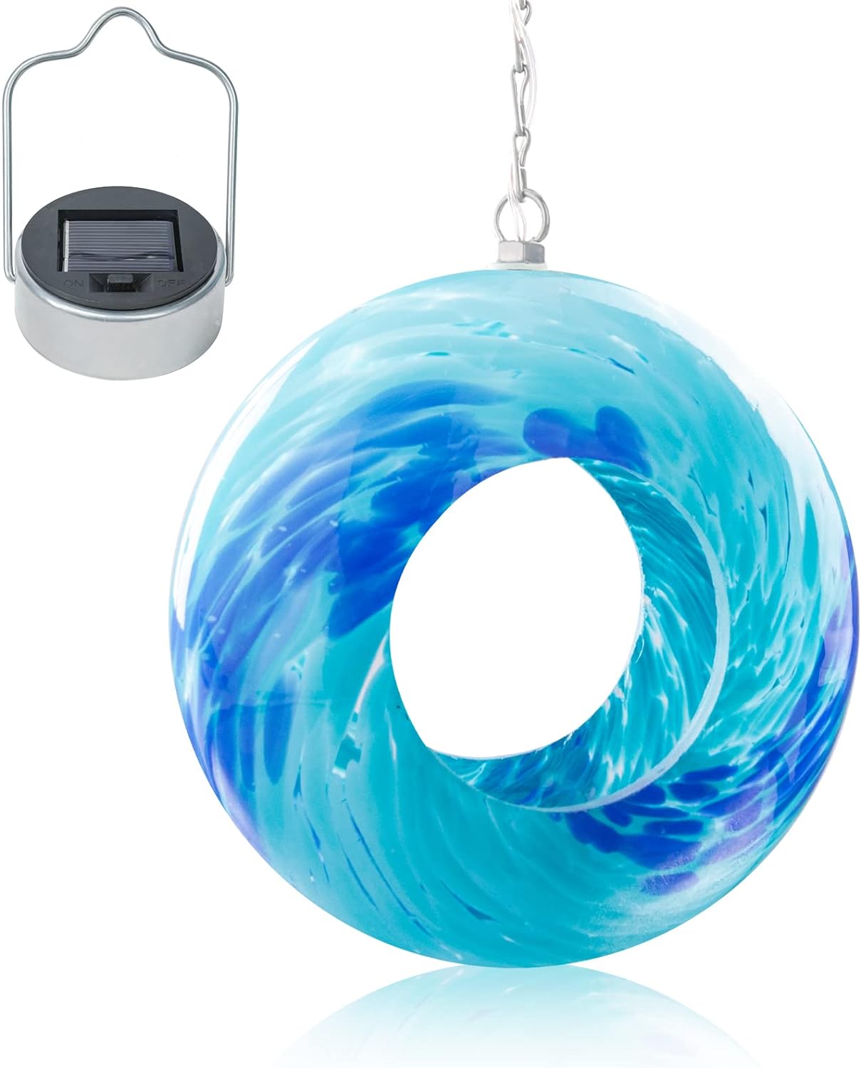 VCUTEKA Bird Feeder Solar Fly Through Birds Feeders for Outside Hanging with Round Shape Glass Container to Attract More Wild Birds for Garden Decor, Solar Birdfeeder as Gift for Bird Lovers, 8-Inch