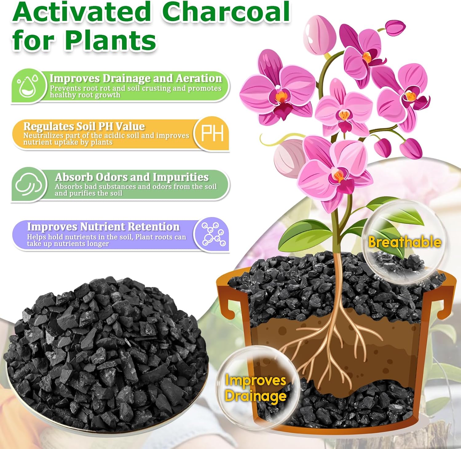 - Promotes Root Health: Natural activated charcoal for plants can be mixed with perlite or charcoal etc. to make the perfect substrate to help create ideal growing conditions for your plants; It will keep the potting medium light and not compact, providing ample air circulation around the roots
