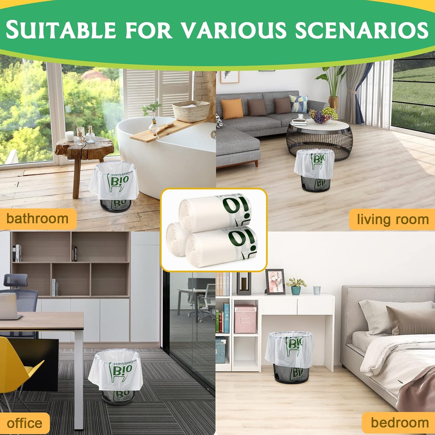 - Compostable Trash Bags:Packaged in rolls for easy portability and storage. 100 pcs per pack; size: 21.65*23.62 IN*0.87Mils; 30.2 liters capacity