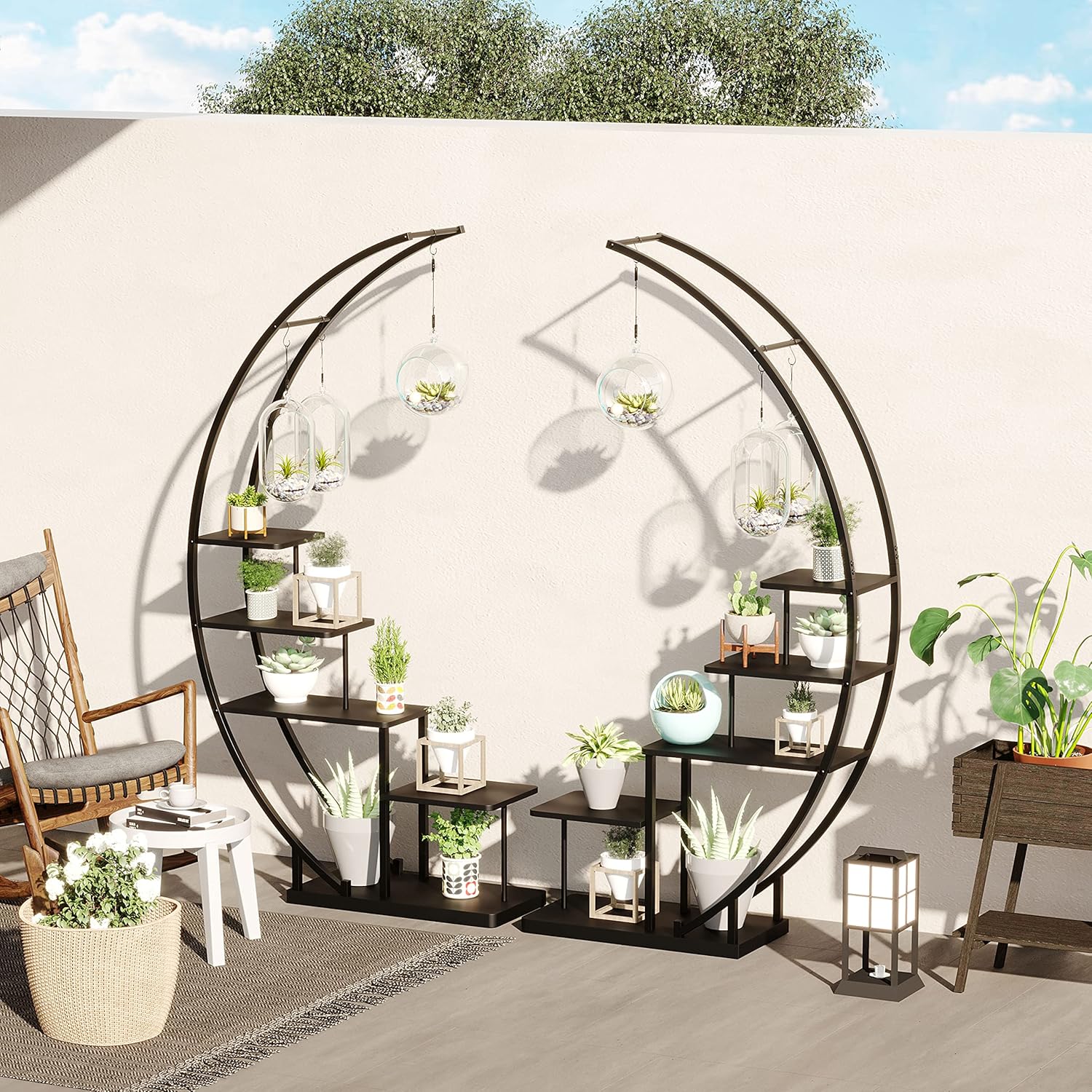 5 Tier Metal Plant Stand Indoor, 67.25“ Tall Half Moon Shape Multiple Stand Holder Shelf Planter Display, Hanging Shelf Flower Stand Ladder for Patio Garden Living Room, Black Set of 2
