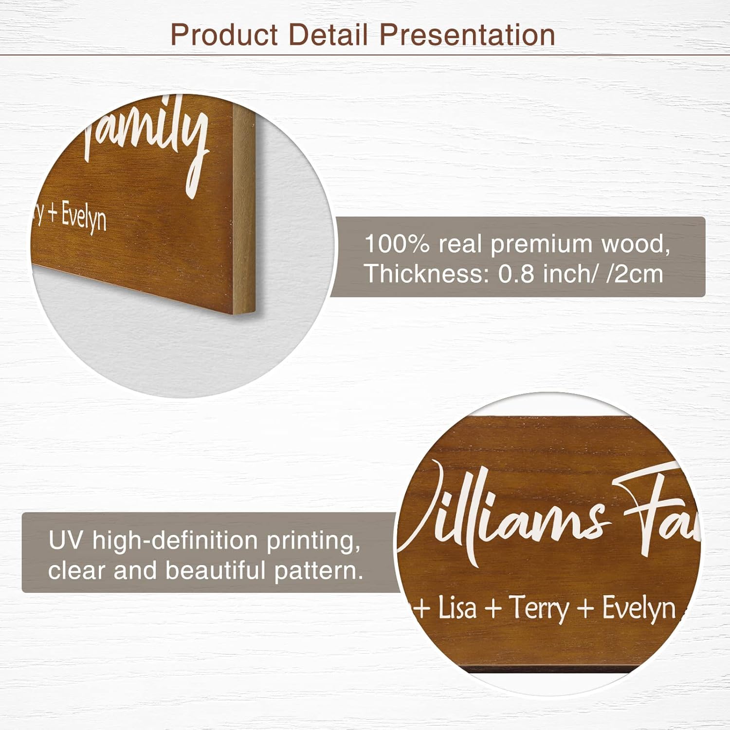 - 👪Personalized Customization👪 After clicking the "Customize" button, you can add your first name/surname or other special information on the board, and you can personalize it according to your special day, such as Mother's Day, Anniversary, Housewarming, wedding or daily use to meet your individual needs.