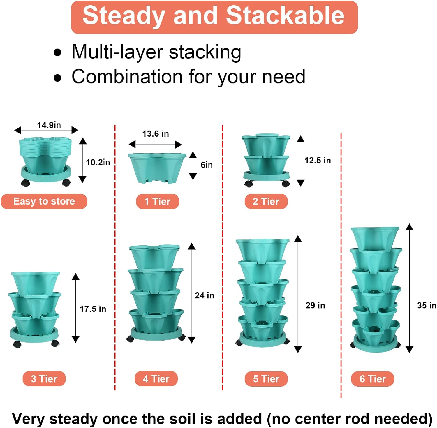 - STACKABLE PLANTER - Stack the planters to the height you desire.
