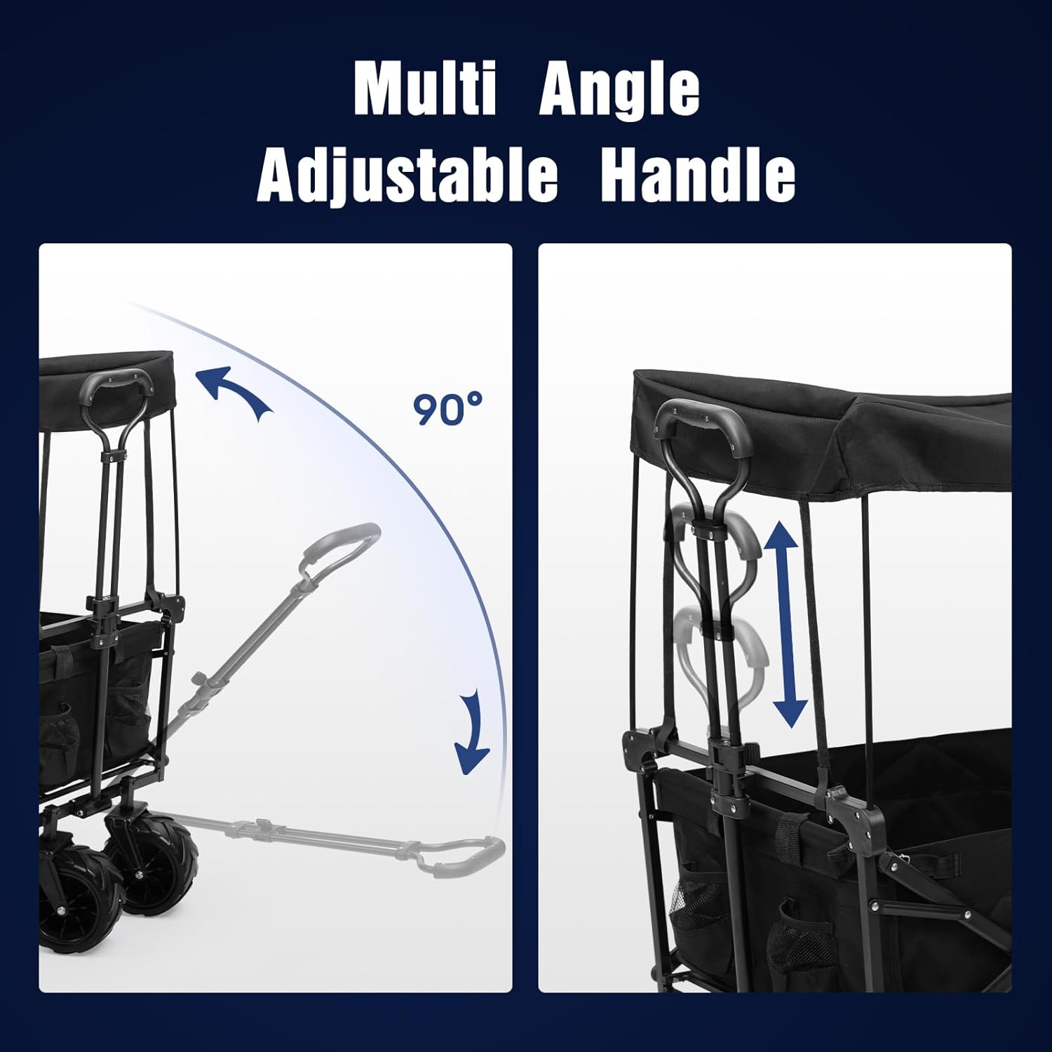 ALIMORDEN Foldable Canopy Wagon Garden Cart, Heavy Duty Outdoor Utility Collapsible Tool Cart with Removable Canopy and Big Wheels, Black