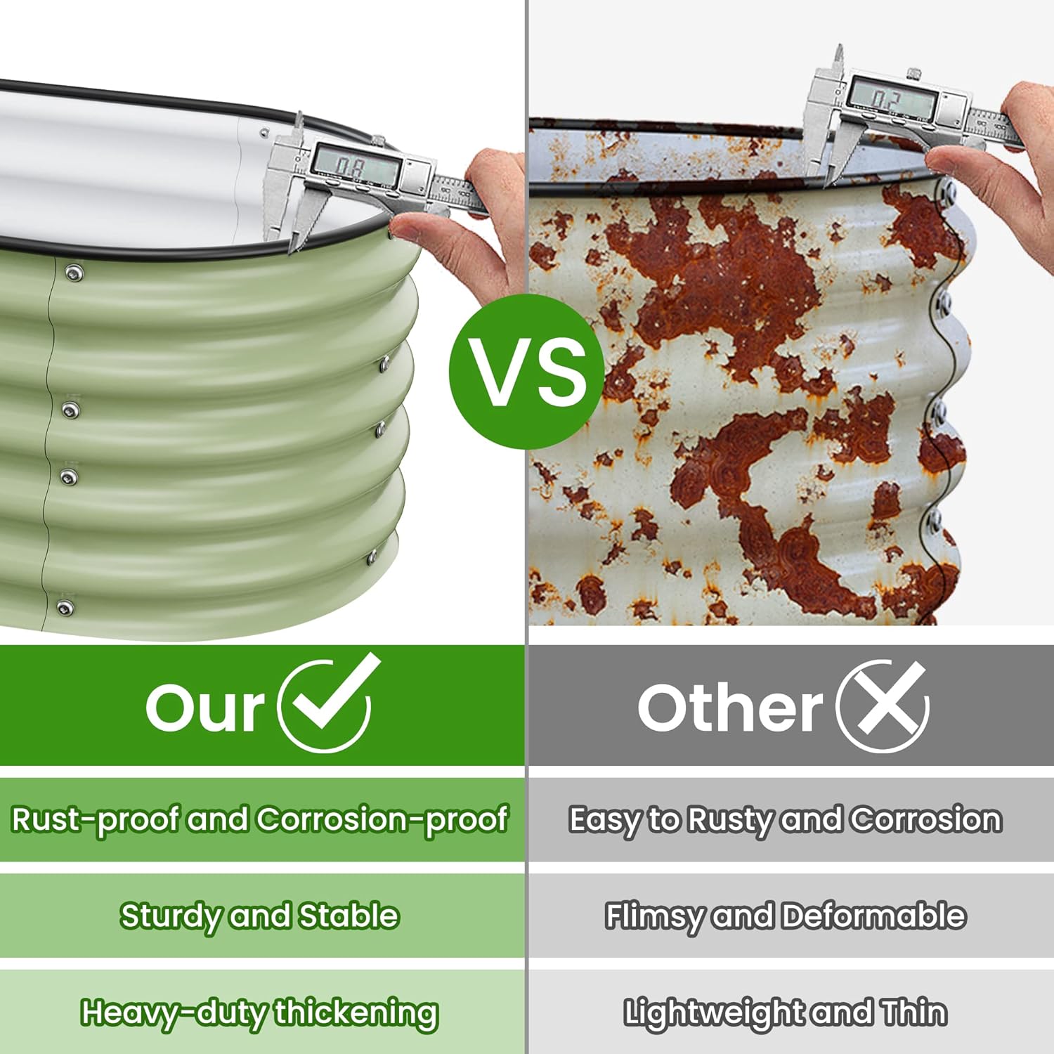 - Strong and Durable: Nossta garden beds Made of 0.6mm thickness zinc-aluminum-magnesium coated steel,its strong anti-rust performance, withstanding rust, rot, mildew, UV rays and corrosion. ensuring up to decades of service life