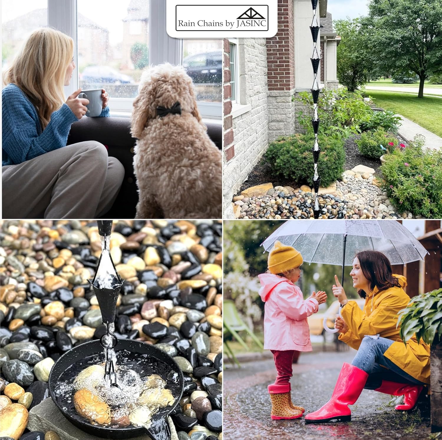 - THE FUNCTIONALITY: Rain Chains by JASINC create a mesmerizing water display as rain cascades down from one cup / link to another, transforming rainy days into a delightful experience.